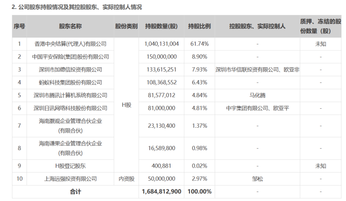 众安在线作为中国首家互联网保险公司,由蚂蚁集团、中国平安和腾讯于2013年联合发起设立。然而,腾讯在该公司的角色已逐渐从创始股东转变为纯粹的财务投资者。截至目前,腾讯的持股比例已降至4.84%,不再具备重大影响力。