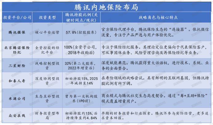 在内地市场,腾讯的保险战略经历了从分散试水到聚焦核心的演变。从早期投资众安在线、水滴公司,到后来重点布局微保平台、增资三星财险并获取重要话语权,腾讯已形成覆盖保险全产业链的投资版图,展现出更加清晰的战略思路。