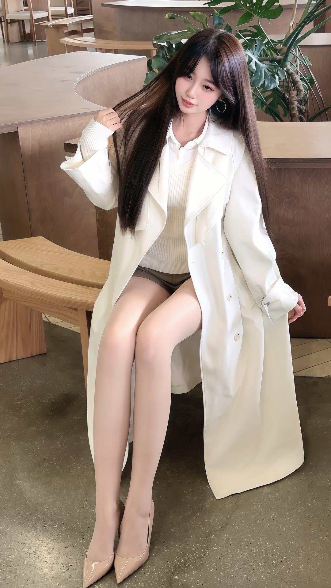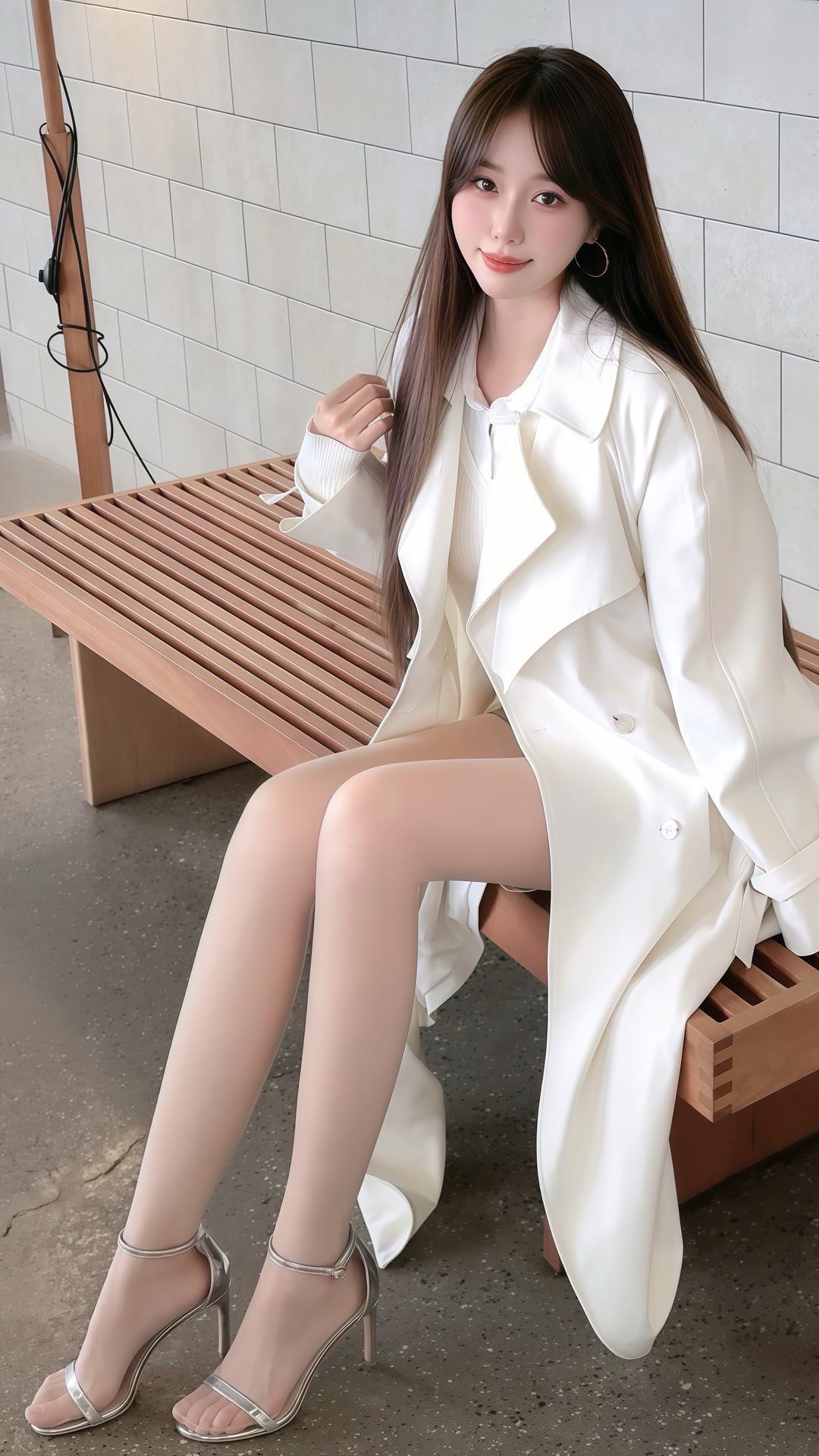 白衬衫+黑短裙简约利落,长发配精致发夹温柔又干练,脚踩透明高跟更显气质。