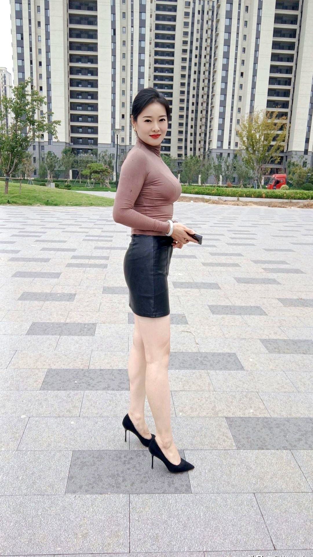 高领修身款能完美展现身材优势,皮裙又增添了点小性感。