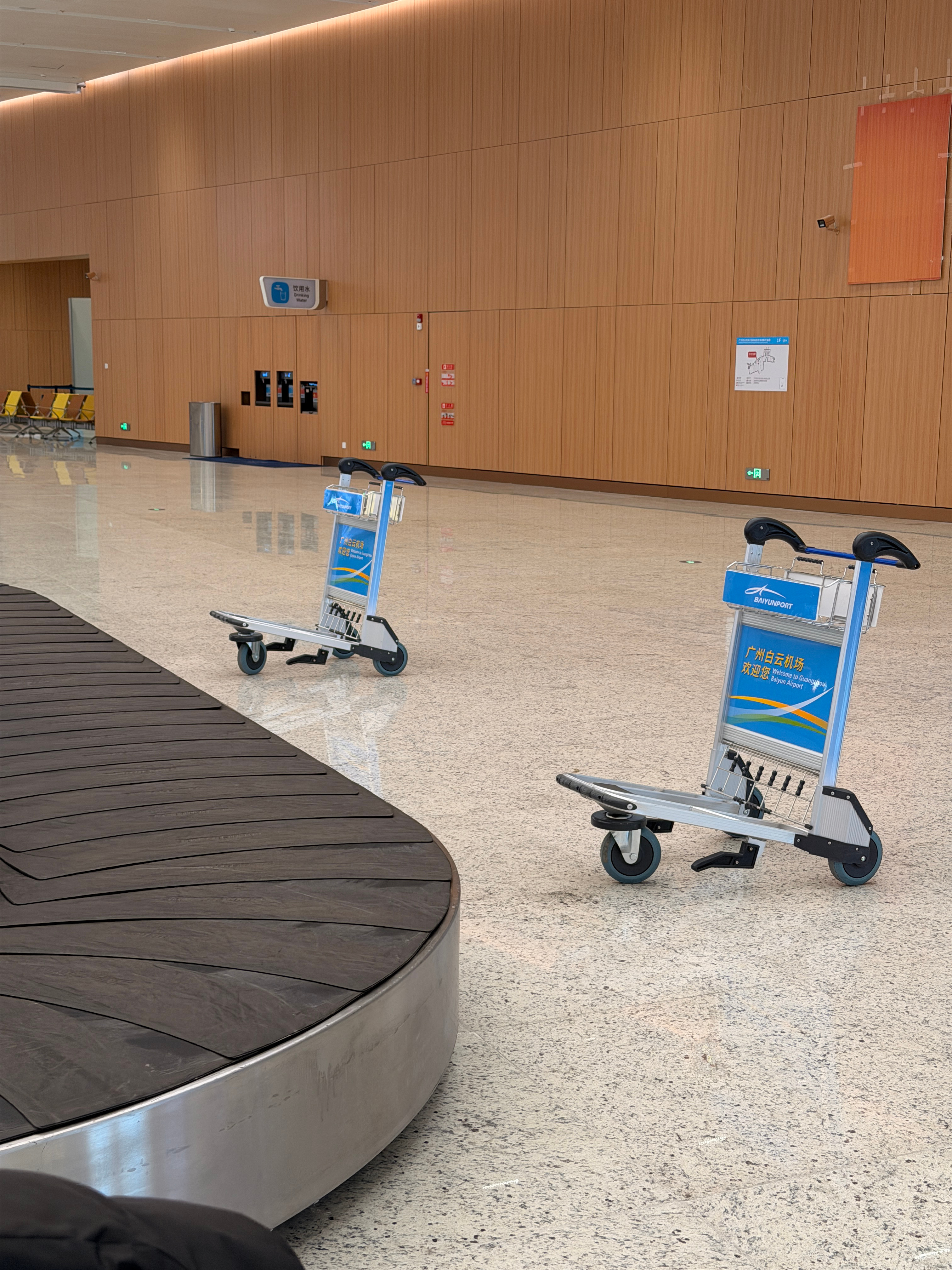 给广州白云☁️机场✈️点赞!!!行李提取区每隔2米都有一个行李推车摆放的整整齐齐