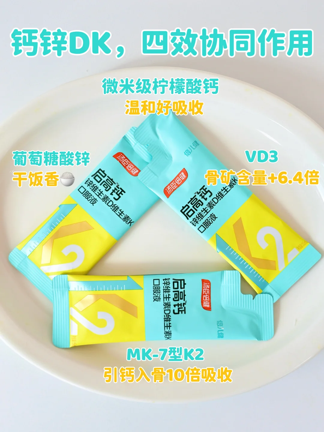 钙不是单打独斗的!最好搭配VD3、锌和K2——VD3促进肠道吸收,锌帮助食欲和生长,K2引钙入骨。尤其推荐“超微柠檬酸钙”+葡萄糖酸锌的组合,温和好吸收,还不刺激肠胃!