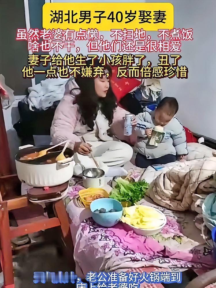 湖北这位40岁大哥的婚姻,简直把“宠妻”玩出了新高度!妻子被子不叠、碗筷不刷,家里乱得像“战场”也从不伸手,可大哥半点不介意,天冷了直接把火锅端到床上给她吃,眼里的宠溺藏都藏不住。 有人说这妻子太懒,可在大哥眼里,这些“缺点”全成了可爱的小性子。他给不了大富大贵,却把“顺心如意”揉进了柴米油盐,让妻子每天都活在被捧在手心里的快乐里。其实婚姻哪有什么标准答案?不是非要女主内男主外,而是有人愿意把你的“懒”当成珍宝,用真心把日子过成专属浪漫。 那些吐槽“不现实”的人,大概是没见过真正的偏爱吧!这样的婚姻,比多少轰轰烈烈的爱情都更戳心。你理想中的婚姻是这样的吗?评论区聊聊~