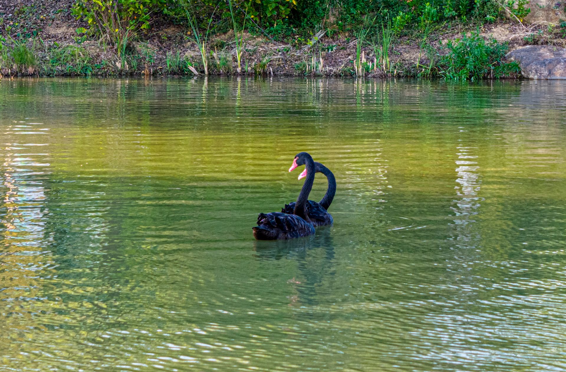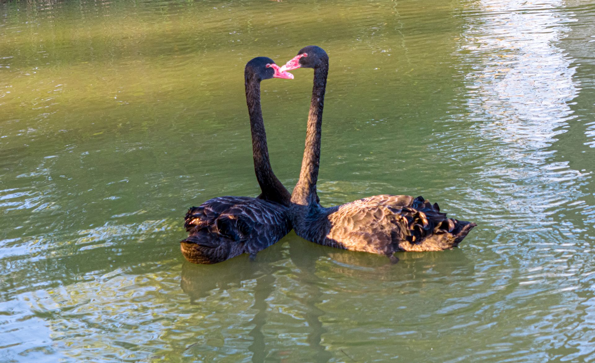 大皖新闻讯11月19日,在庐江第二中学校园内的文翁湖里,两只红嘴黑天鹅颈部修长、体态优雅,尽享冬日阳光的惬意时光。