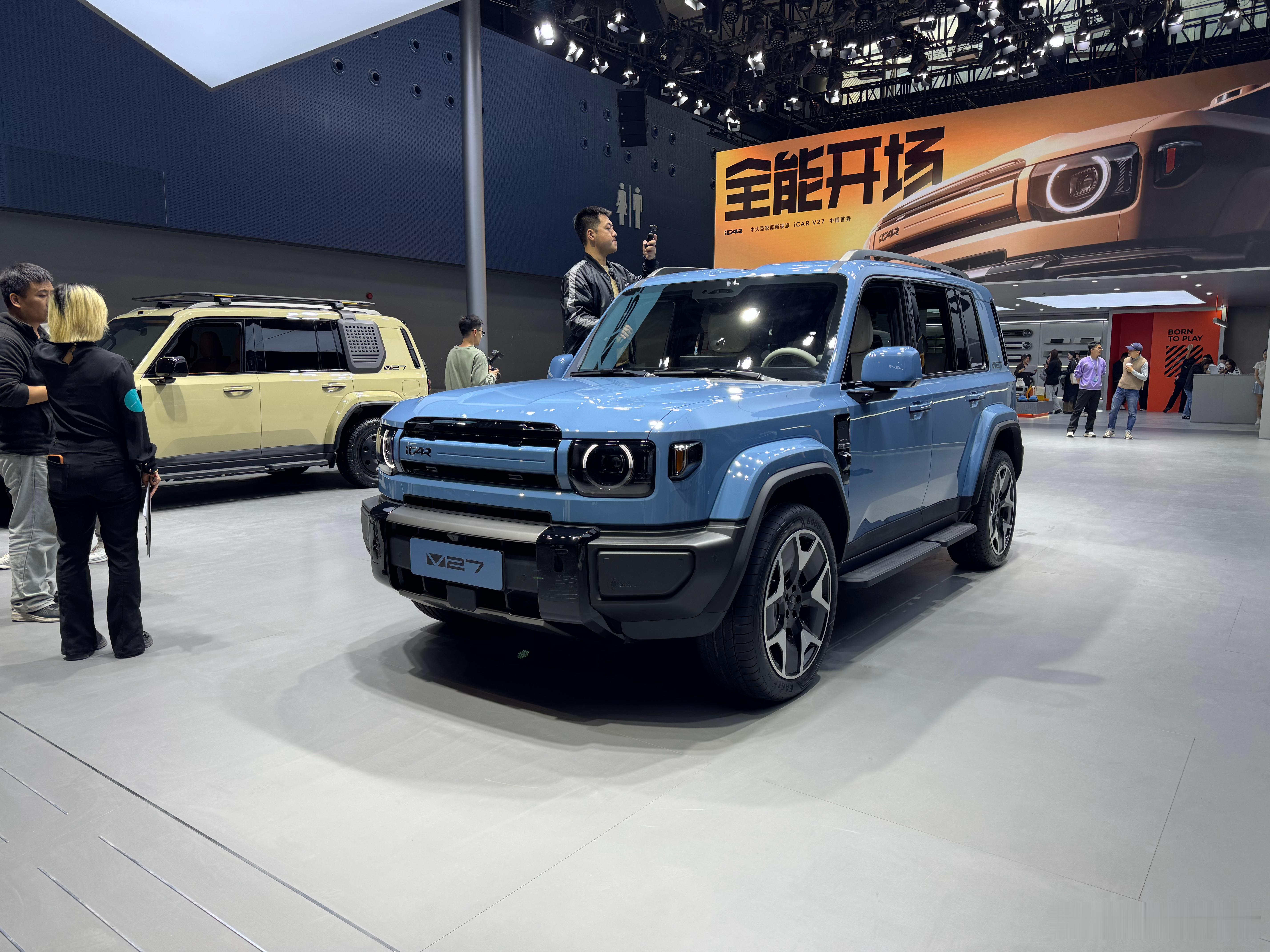 iCAR V27,这次广州车展比较有意思的一台车,正面是卫士,45度是大G,屁股