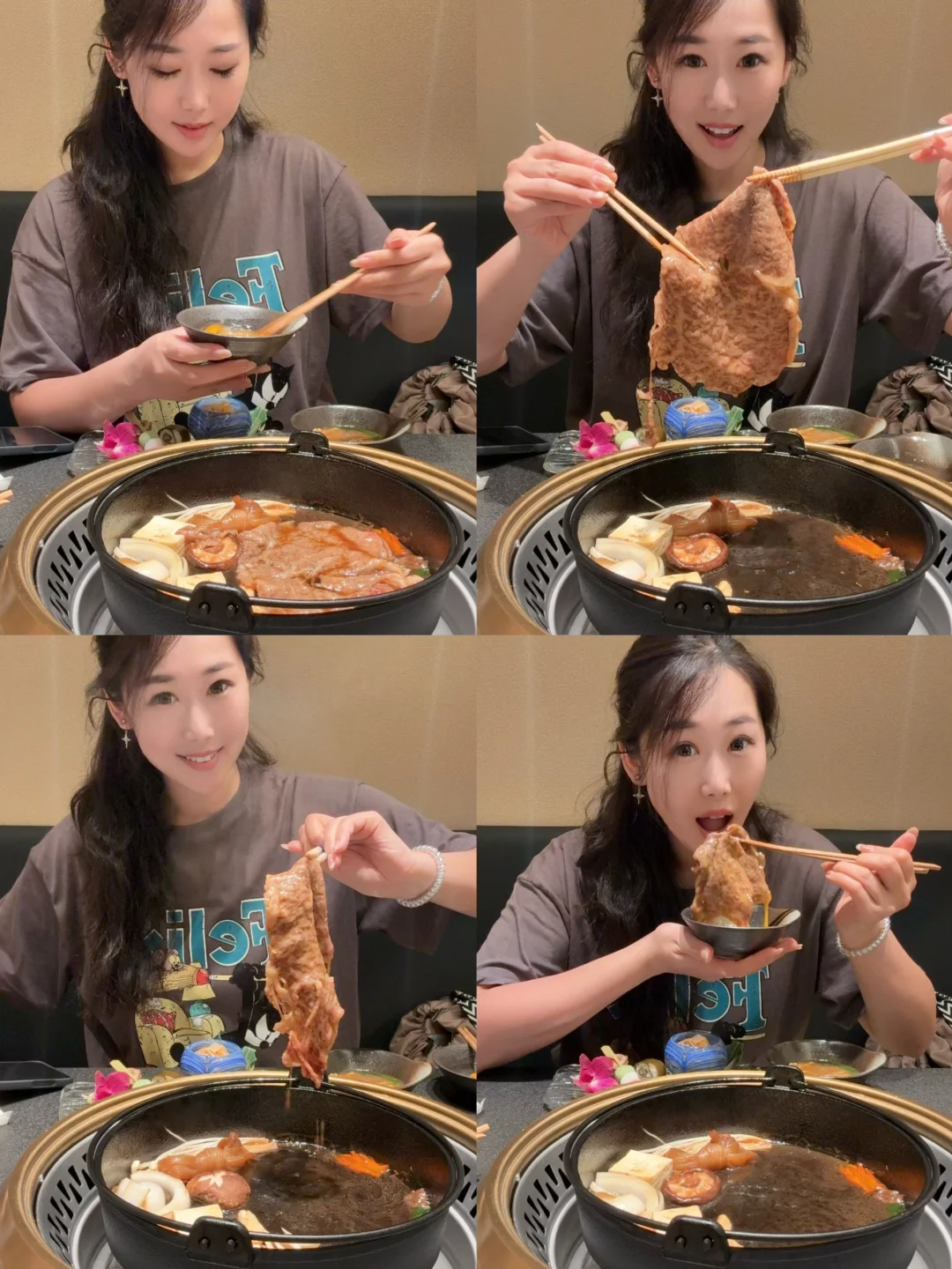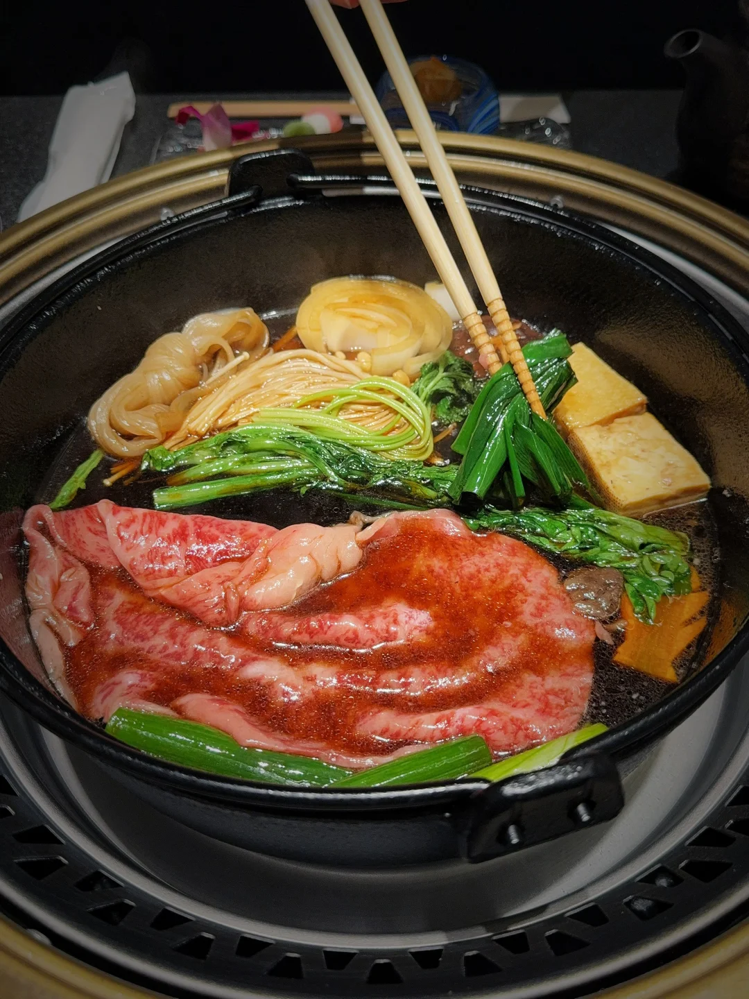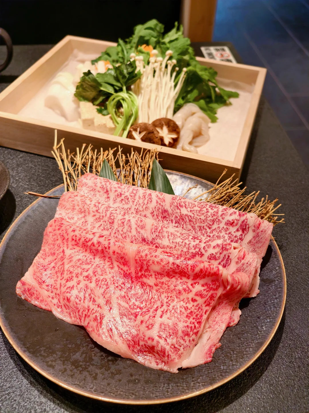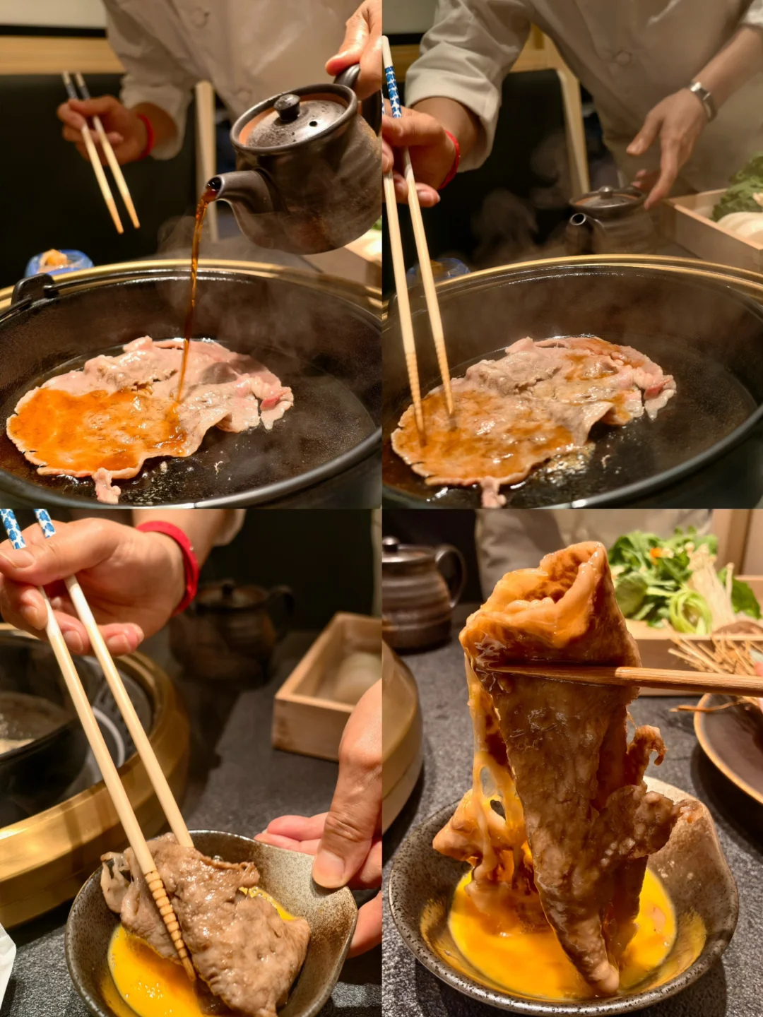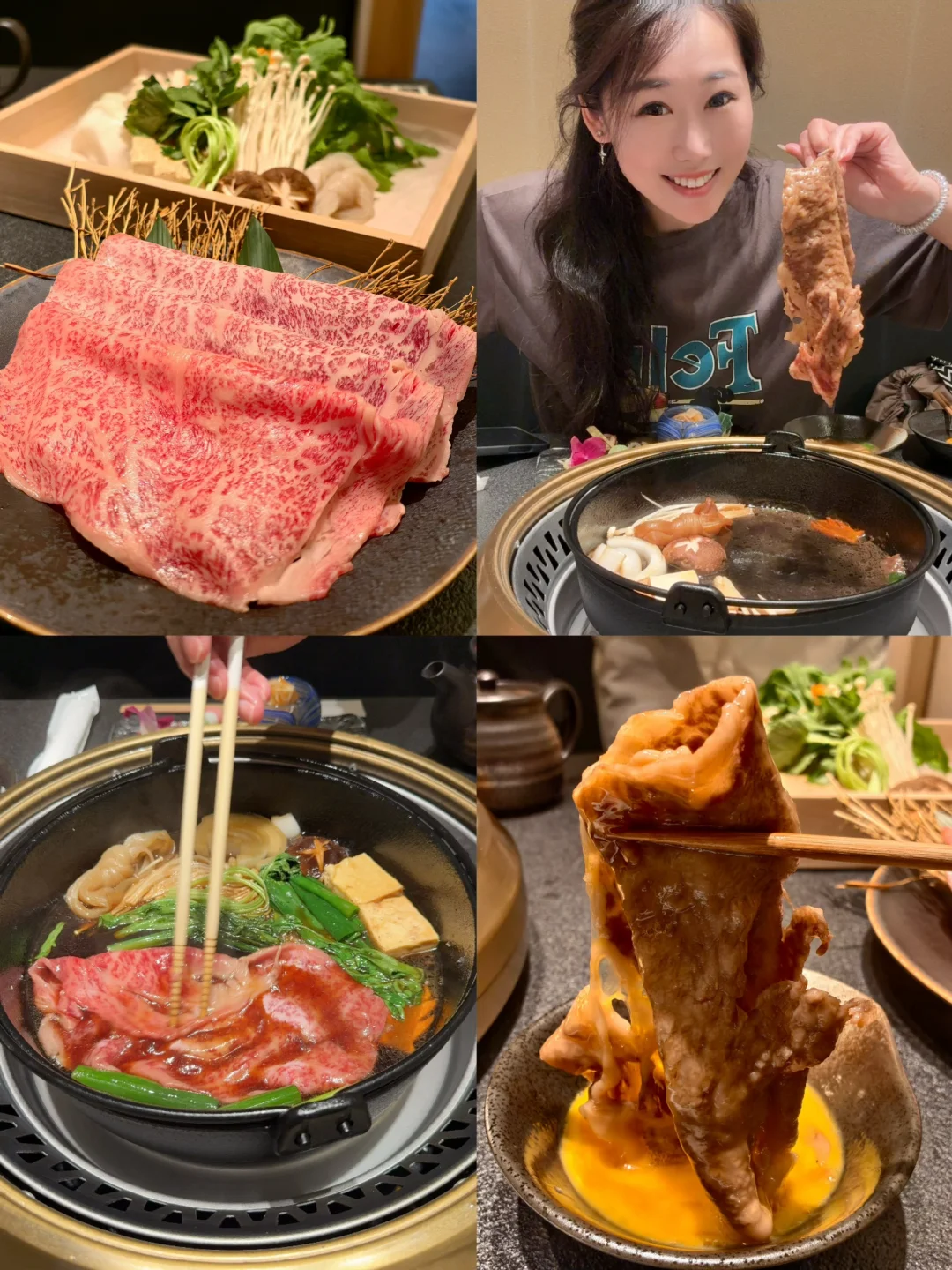 宝子们谁懂啊!来日本不吃和牛真的会遗憾! 大阪心斋桥瞎逛时,发现的这家「晓牛烧肉」 直接把我香迷糊了!就在格力高举手小人广告牌50米处!当时看着大屏幕广告就被吸引,想着试试,结果直接被惊艳到‼️‼️‼️ 🥘点了他家招牌寿喜烧,居然用的可是A5级和牛啊!每片牛肉都切得薄厚均匀,雪花纹理美得像艺术品❄️光是盯着看就很享受~ 👨🏻‍🍳大厨超有范儿,边煎和牛边科普冷知识!原来神户和牛的脂肪分布超绝,细密均匀,入口即化的口感真的绝了!听着锅里滋啦滋啦的声音,寿喜烧的香甜味直往鼻子里钻~裹上无菌蛋液送入口中,那一刻真的原地起飞! 🐮🥩牛肉鲜嫩到不行,蛋液顺滑细腻,再加上寿喜烧酱汁的香甜,油脂在舌尖爆开却完全不腻,这口感真的找不到词形容,就想说太太太太太太好吃了! 除了和牛品质高,服务也超贴心!大厨煎制结束后,还会将锅底改造成寿喜烧,带你探索和牛的另一种风味。服务生小姐姐也是全程在线,添茶水、收拾桌面超及时,用餐体验满分💯 🔥店铺信息「🅿️图13」 🍱店名:鉄板・暁牛(Teppan・Gyogyu ) ⏰营业时间:11:00~15:00/17:00~23:00 📍地址:大阪府大阪市中央区道頓堀1-6-12 ニコービル 4F(直接导航超方便!) 真心建议来大阪心斋桥的宝子都冲!这一口下去真的是舌尖上的享受,让人念念不忘‼️