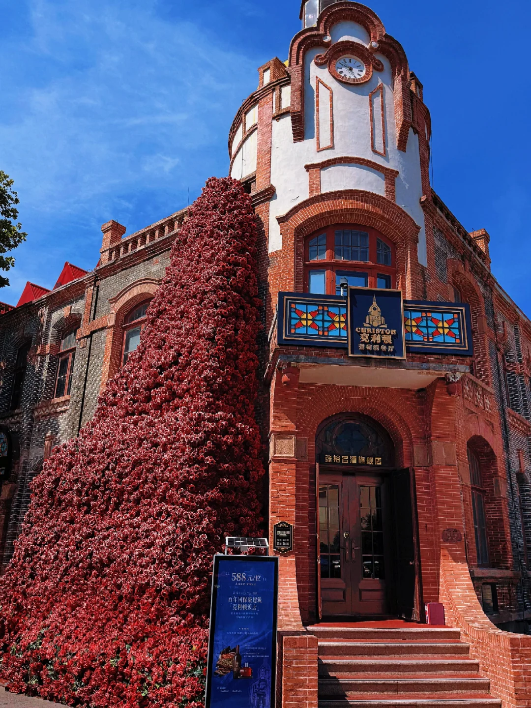 1️⃣朝阳街:民国风情街,有洋行和文创小店,漫心酒店的熊猫墙,玫瑰花墙,鲜榨苹果汁
