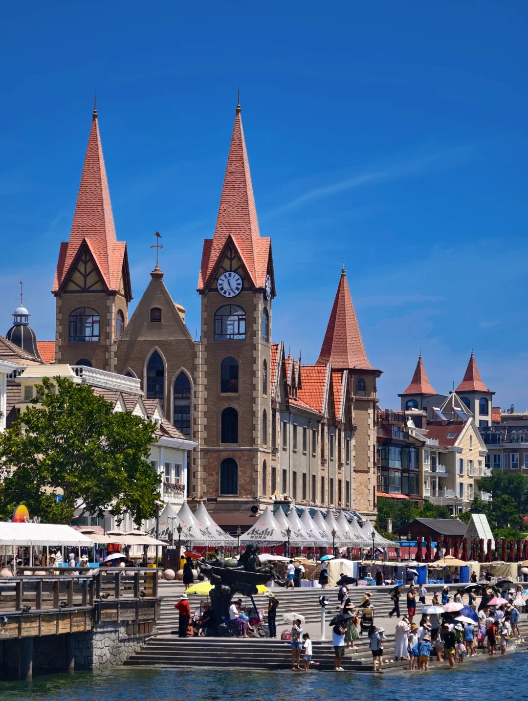 2️⃣海昌渔人码头:烟台版布拉格,欧式建筑,欧罗巴风情,打卡千与千寻同款海上铁轨机位
