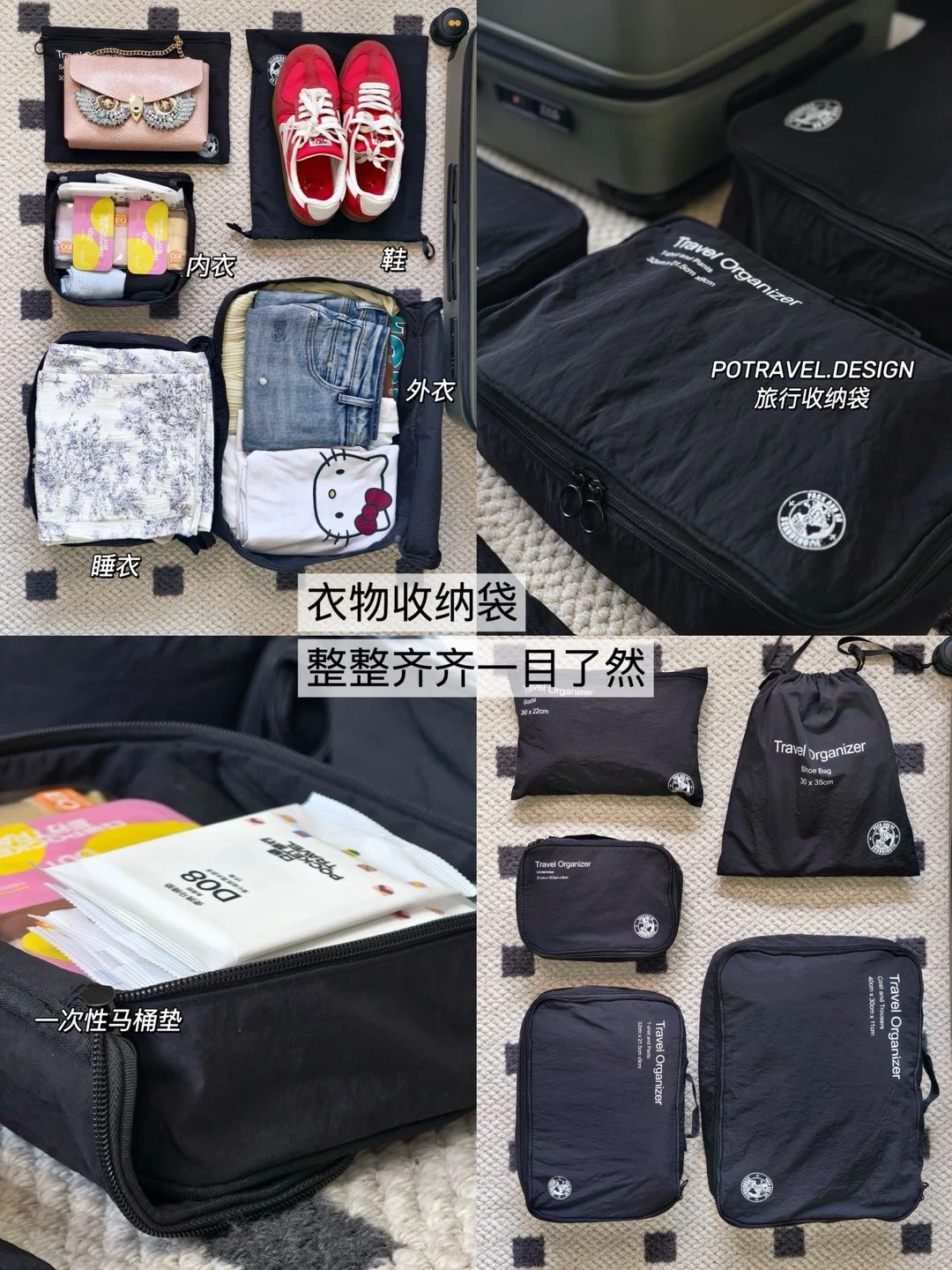 ◾洗漱包+化妆包+药品:感冒药、止痛药、肠胃药、创可贴等常用药品。