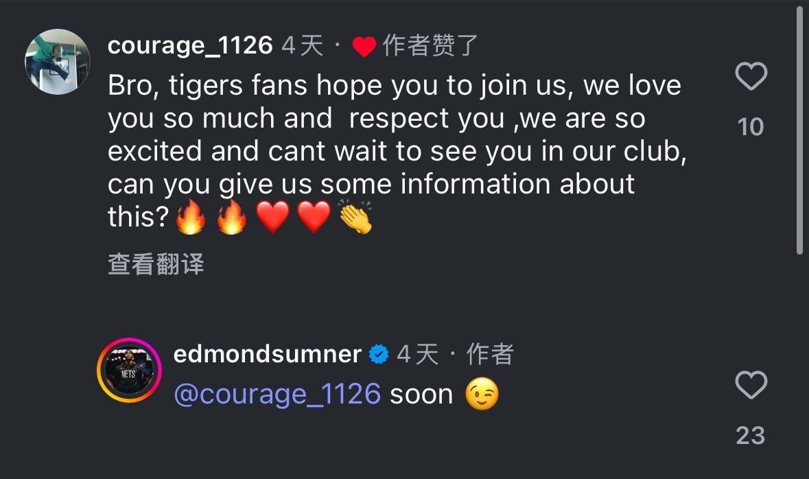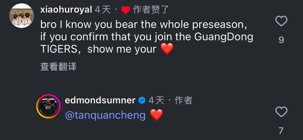 随后,有中国网友评论:兄弟,广东队的球迷非常希望你加入我们,我们迫不及待想要在广东见到你,你能告诉我们一些具体细节吗?