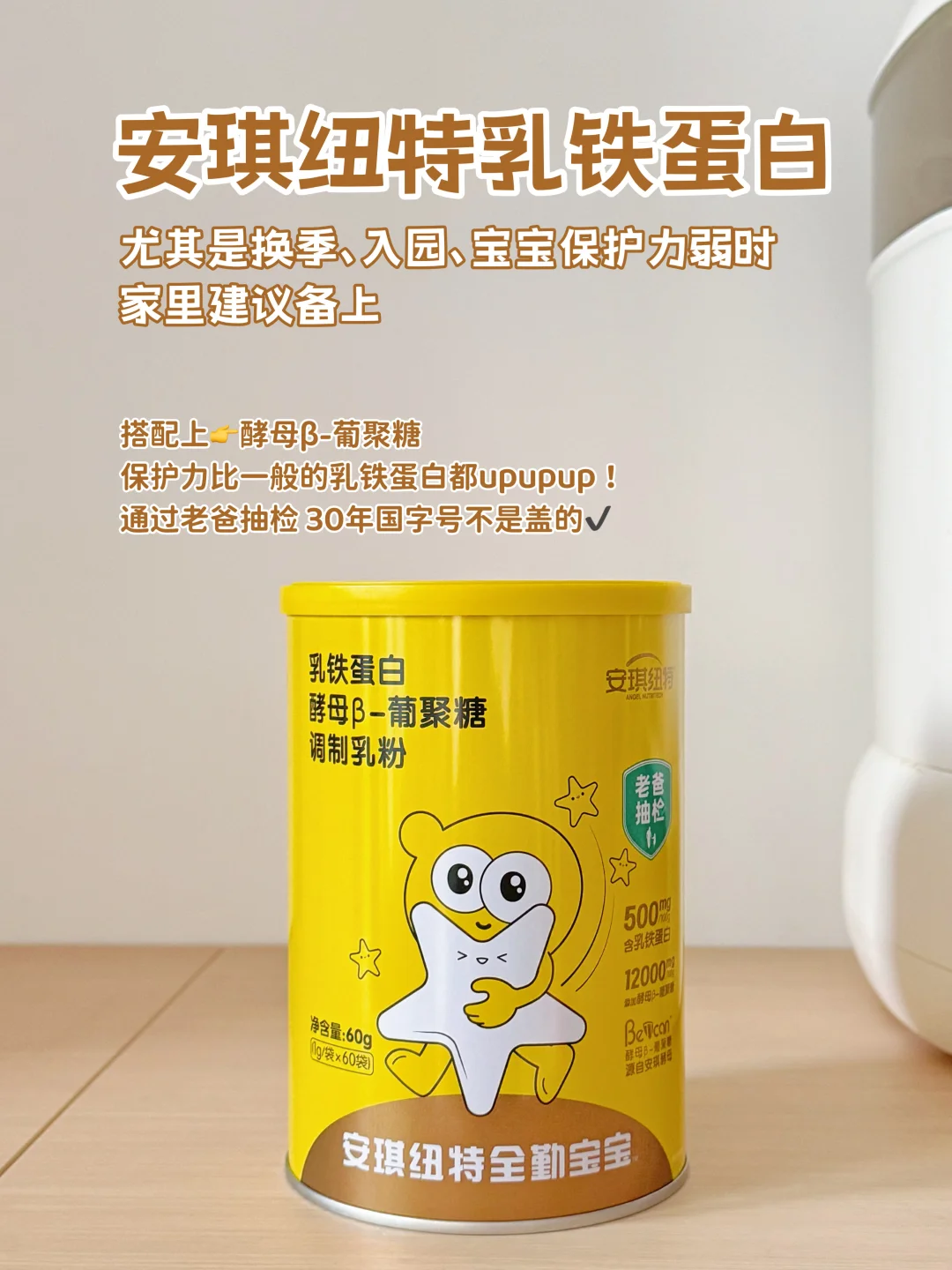 🔹其实也不用分开买,直接选择含酵母β-葡聚糖的乳铁蛋白粉即可,其中👉安琪纽特就是一个代表。它不是单一的乳铁蛋白,而是由乳铁蛋白+免疫球蛋白+N-乙酰神经氨酸+酵母β-葡聚 糖+食用非活性酵母+Bb-12益生菌+接骨木莓,妥妥的吃1补7,强强联合全面提升保护力 upupup!✔️经得起老爸抽检,实力就摆在这里!