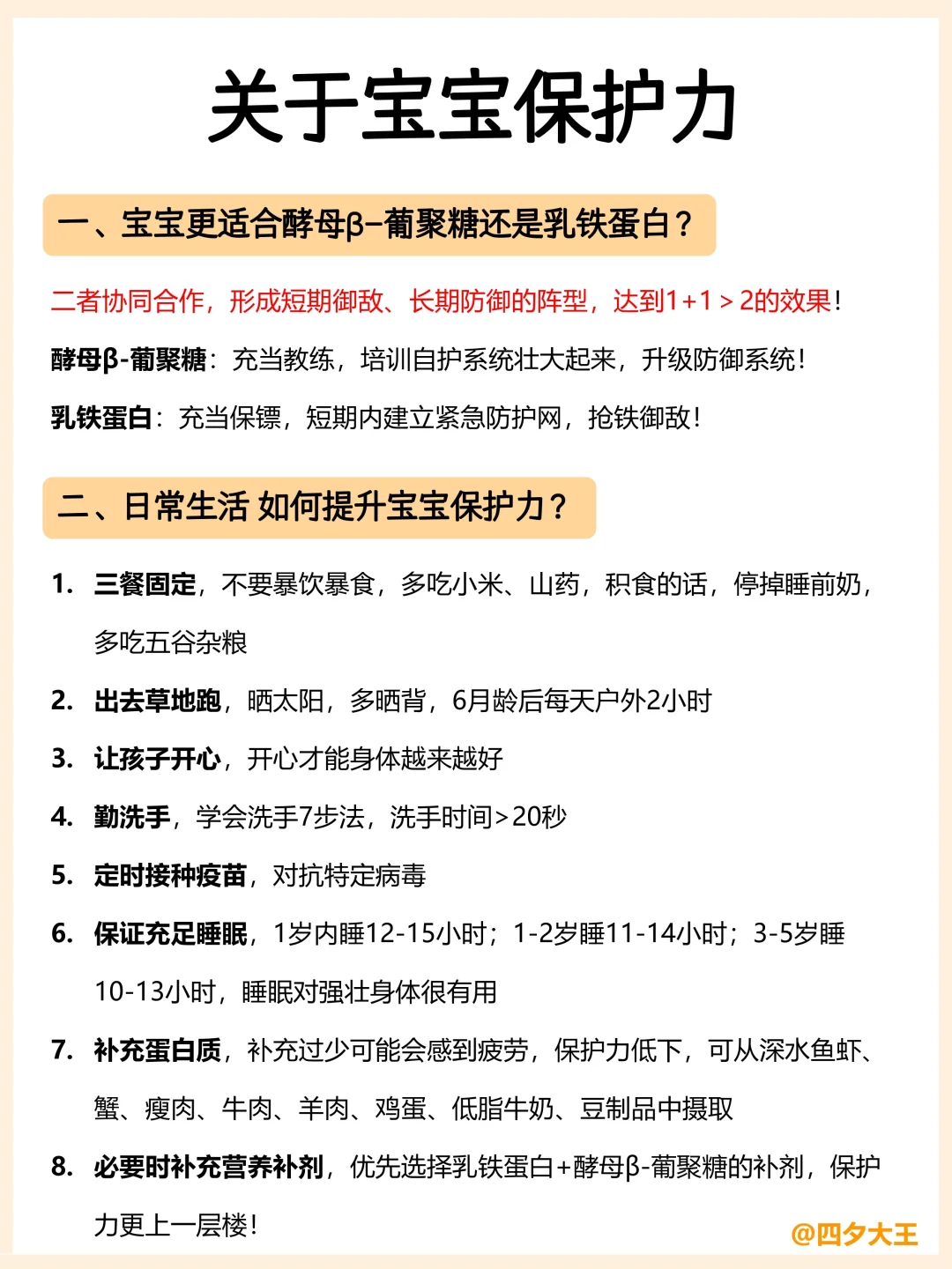 在提高宝宝自护力方面,很多妈妈都听说过2大核心成分,他们分别是【和酵母β-葡聚糖】【乳铁蛋白】。那么,它们到底怎么选⁉️今天,我用4张图给你说清楚!