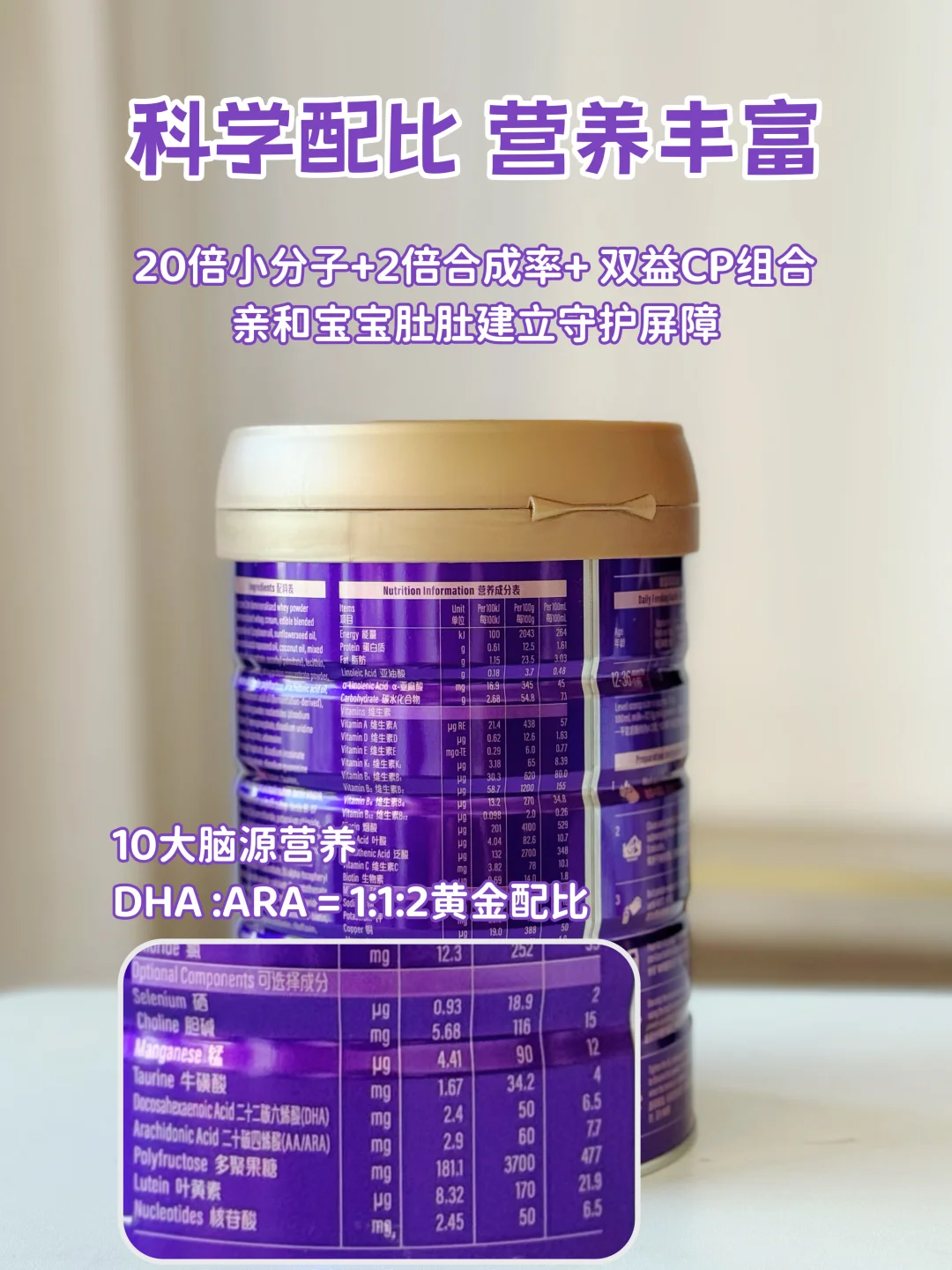 脑眼发育很让人放心,优博瑞霂特别含有5大脑磷脂 + DHA:ARA黄金配比的1:1.2 ! 再加上乳清蛋白是小分子结构,比一般酪蛋白小近20倍,搭配益生菌益生元,吸收力嘎嘎强!