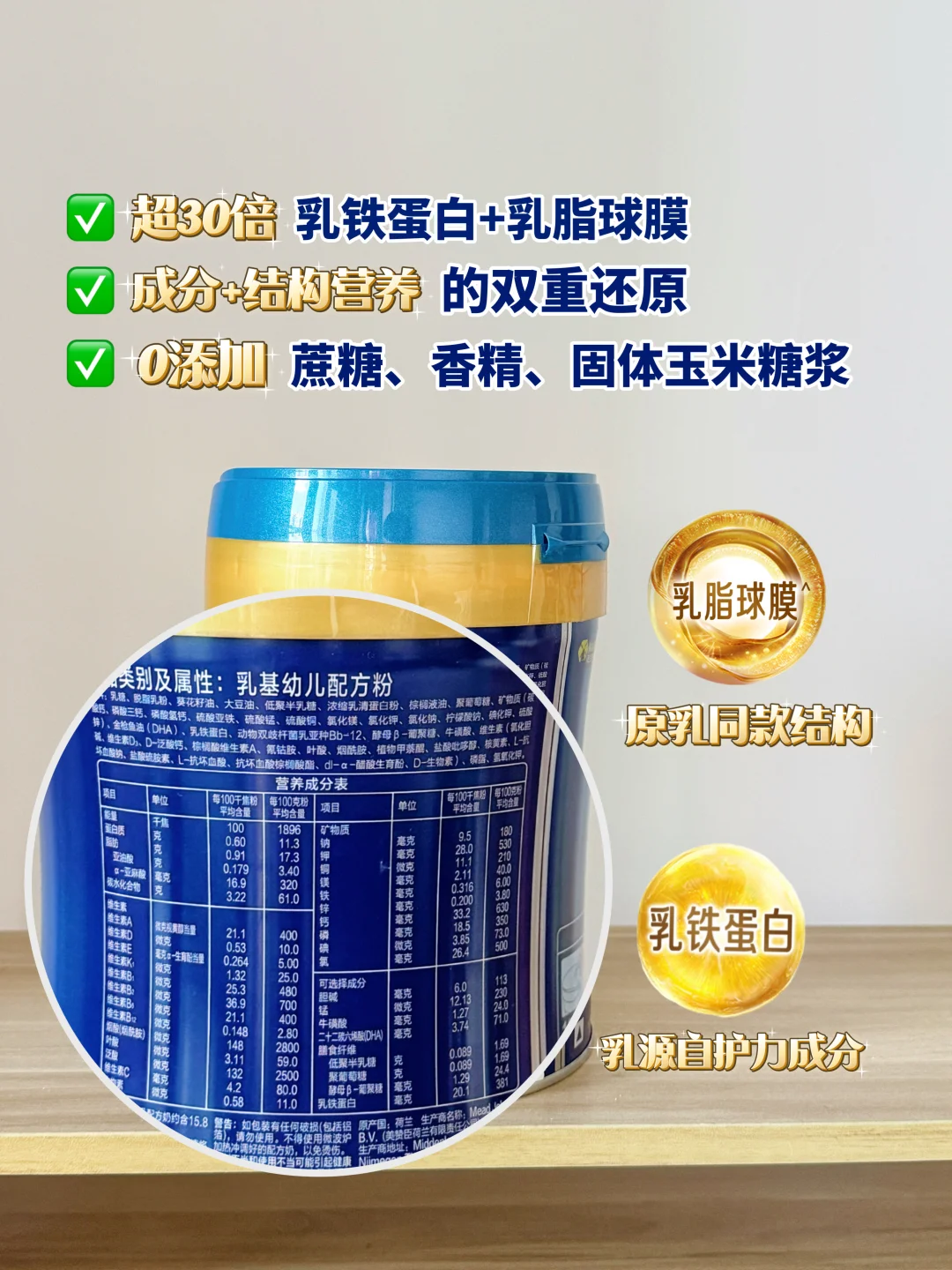 ✅成分上:添加了初始营养水平的乳铁蛋白,就像是给宝宝装上了一个“防护盾”,更好的抵御外界环境;