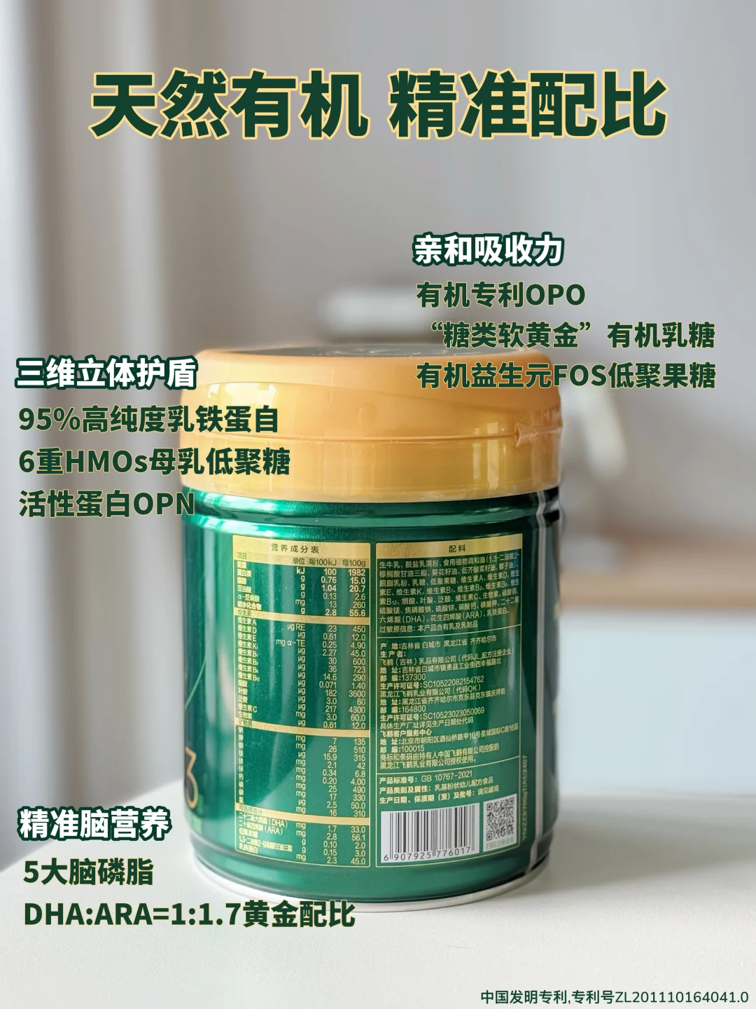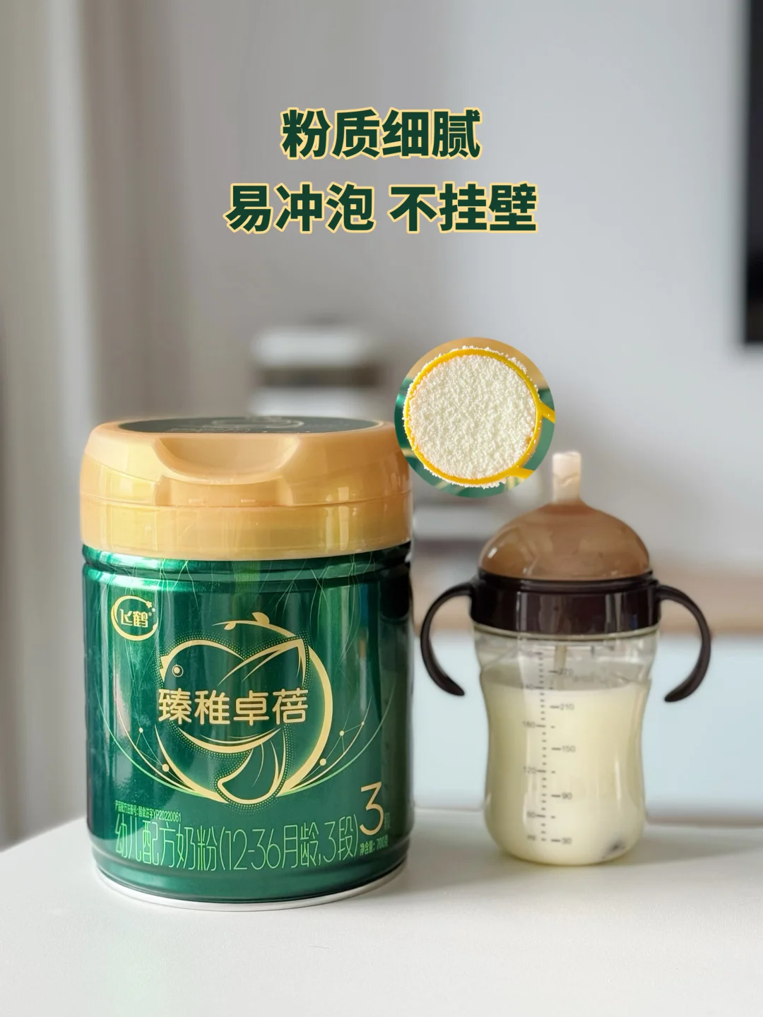 以我家宝宝在喝的飞鹤臻稚卓蓓为例,它的奶源自北纬47度黄金奶源地,飞鹤有机专属牧场,超1000天深度净化,0激素0化肥和0农药,用有机草、弱碱性苏打水饲养奶牛,属于有机奶粉里的优等生!