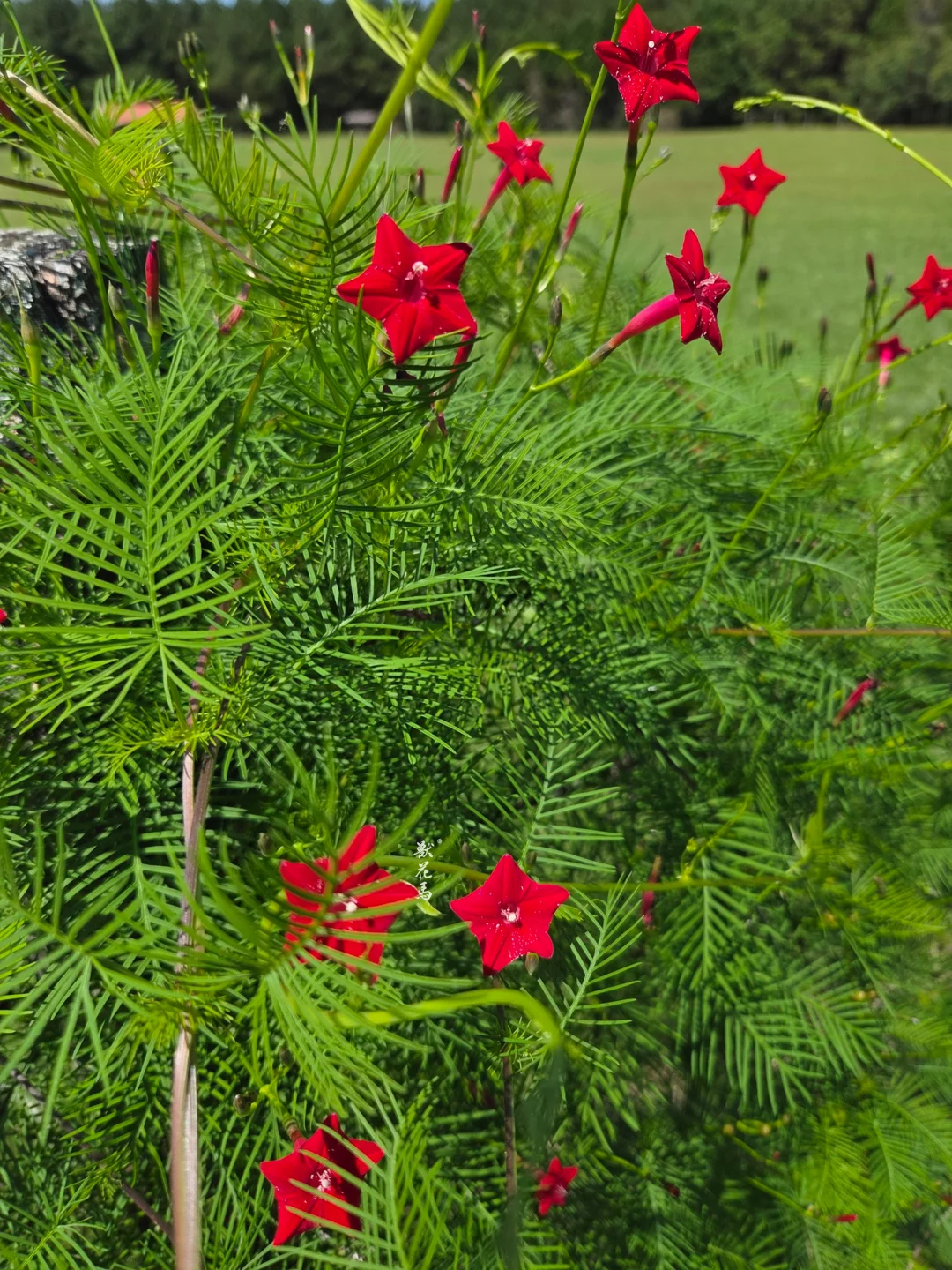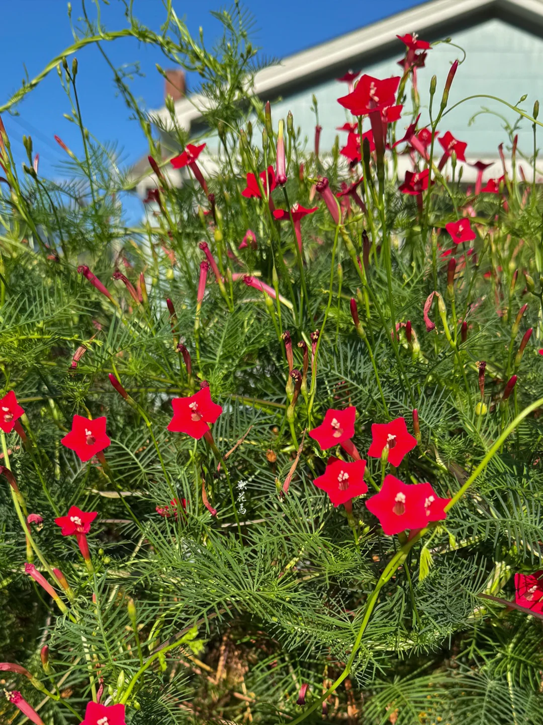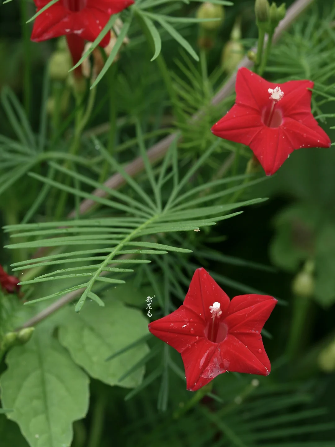 🌿🌿✨【柔蔓绕篱,红星点点】✨🌿🌿 ▫️𝙉𝘼𝙈𝙀 「茑萝」Ipomoea quamoclit 俗名:五星花、锦屏封、绕龙花 ▫️𝙁𝙇𝙊𝙒𝙀𝙍 𝙎𝙃𝙊𝙒 ✨叶羽状纤细,如翠云层叠,柔蔓攀援生长 ✨花深红色,五角星形,小巧玲珑如缀锦屏 ✨花期长且繁密,夏秋时节开成一片绚烂红霞 ▫▫️𝙃𝘼𝘽𝙄𝙏𝘼𝙏 🌱原产热带美洲,现广植于全球温暖地区 🌞喜温暖湿润、阳光充足环境,耐热不耐寒 🌧对土壤要求不严,以疏松肥沃、排水良好的砂质壤土为佳 🌱一年生草本,夏秋开花,生长迅速且强健