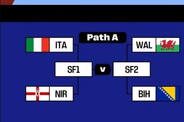 意大利附加赛先主场对北爱,若晋级将客场对威尔士波黑胜者