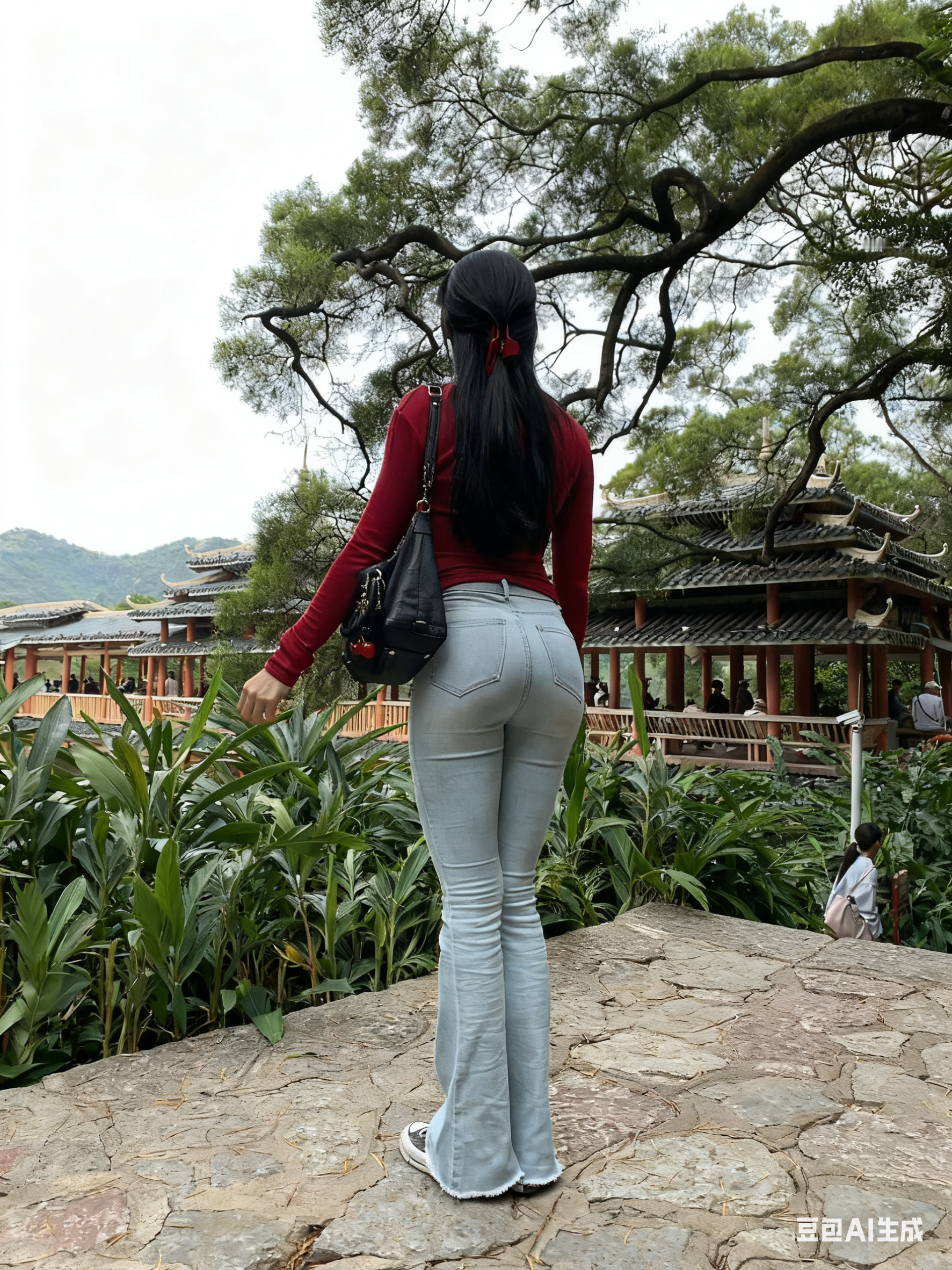 牛仔裤秀出好身材气质美女背影杀 牛仔裤穿搭之美 气质美女好身材秀出来 美女与自然