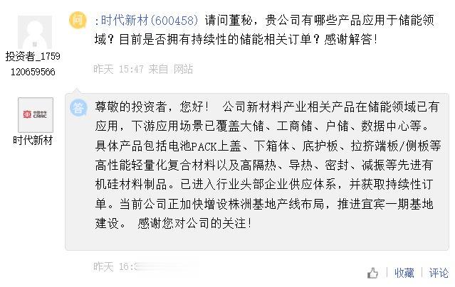 时代新材[600458]:公司新材料产业相关产品在储能领域已有应用,下游应用场景已覆盖大储、工商储、户储、数据中心等。具体产品包括电池PACK上盖、下箱体、底护板、拉挤端板/侧板等高性能轻量化复合材料以及高隔热、导热、密封、减振等先进有机硅材料制品。已进入行业头部企业供应体系,并获取持续性订单。当前公司正加快增设株洲基地产线布局,推进宜宾一期基地建设。