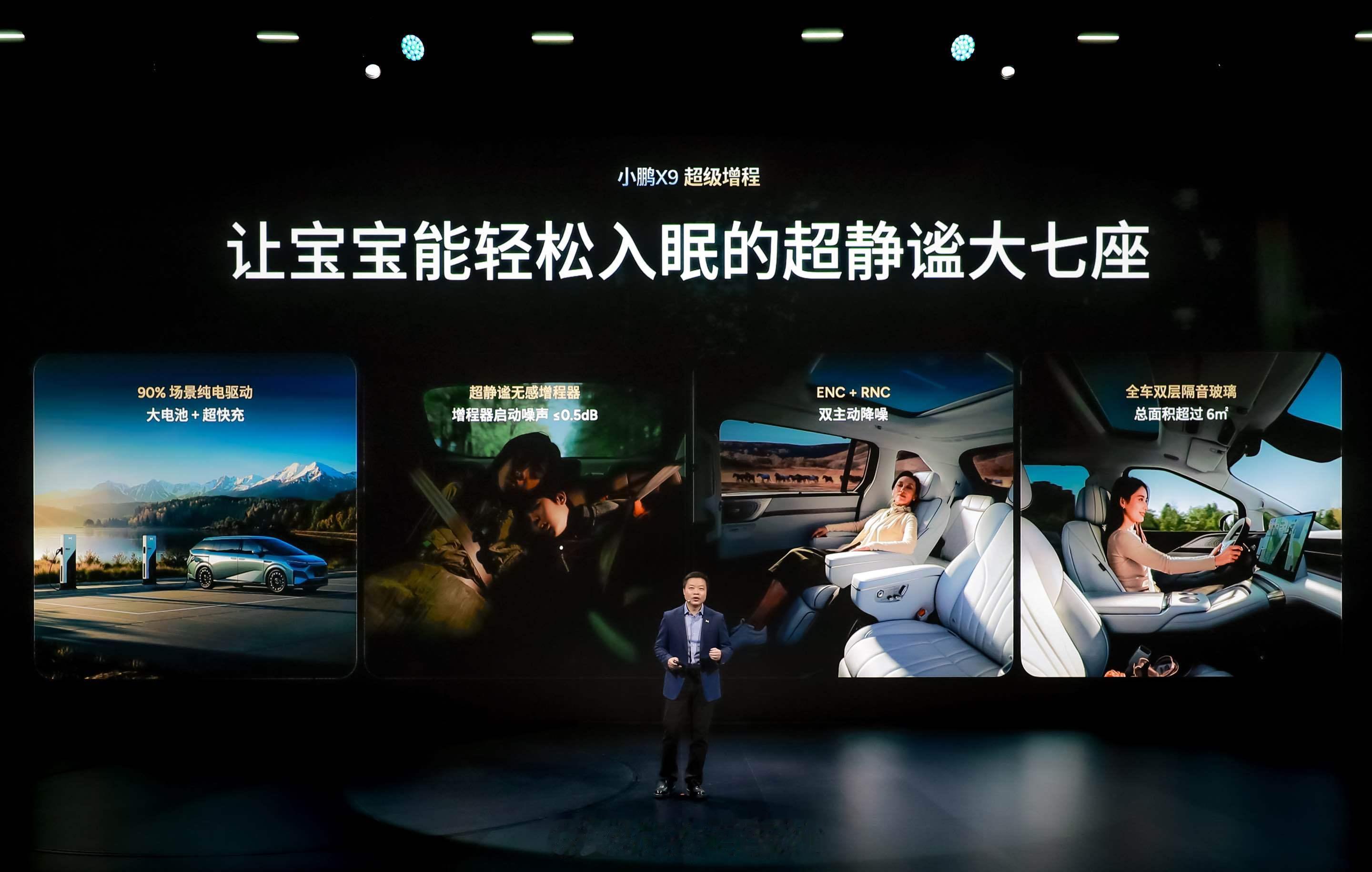 小鹏X9超级增程上市发布会现场,何小鹏用分贝仪测试了小鹏X9超级增程的静谧性,让全场观众现场见证了小鹏X9超级增程超越百万级豪华MPV的静音实力。路越远,心越近。通过主动降噪技术与整车加强的被动隔音设计,小鹏X9超级增程实现了即使在闹市区也能让宝宝安心入眠的深海级静谧体验。