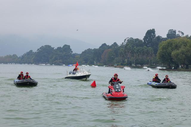 近年来,水上治安分局不断拓展“公安+行政+群众+机制”水域联动执法,创新构建“1+2+3+N”生态警务工作模式,强化水上治安防控、提升水域救援能力,全力护航滇池生态安全和环滇旅游黄金岸线安全。为应对环滇池水域人流量增加带来的救援安保压力,分局于2024年7月17日组建滇池首支公安专业水上搜救队,推行“边建队、边训练、边学习、边实战”工作模式,坚持刻苦训练、科学训练、安全训练工作要求,正式成立“云凫”水域搜救队,进一步提升水域搜救的专业化水平和应急处置能力。