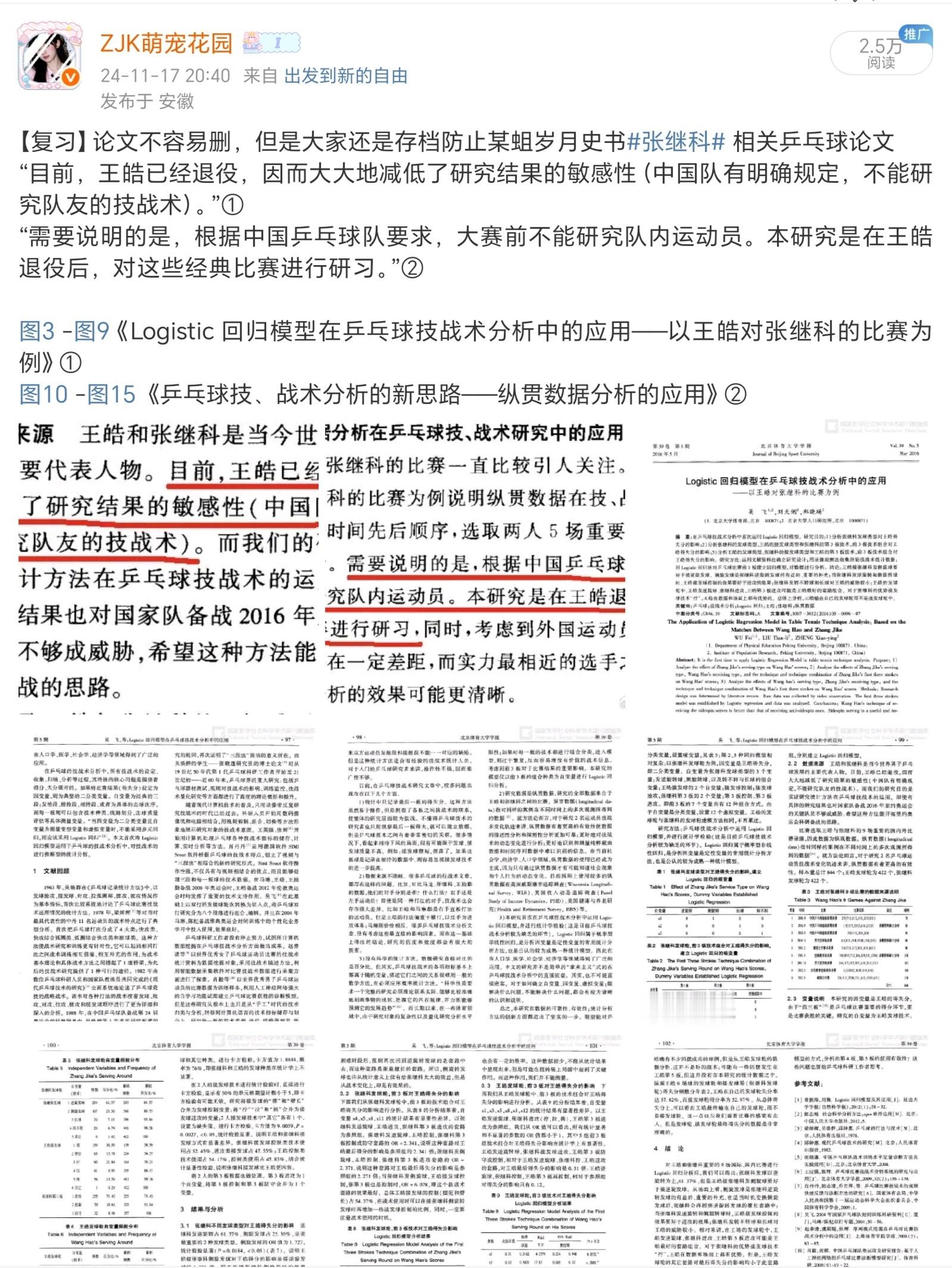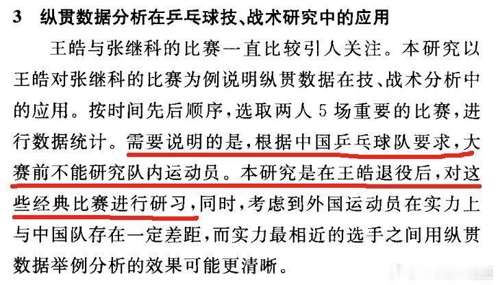 【石砸🐔叫】 是谁睡不着来聚去年的这篇了?本篇甚至不是张继科被研究的论文,而是说明队内有明确规定不能研究在役队友。运动员a及其团队的行为是铁板钉钉的违规。“目前,王皓已经退役,因而大大地减低了研究结果的敏感性(中国队有明确规定,不能研究队友的技战术)。”①“需要说明的是,根据中国乒乓球队要求,大赛前不能研究队内运动员。本研究是在王皓退役后,对这些经典比赛进行研习。”②①②分别来自这两篇论文《Logistic 回归模型在乒乓球技战术分析中的应用——以王皓对张继科的比赛为例》《乒乓球技、战术分析的新思路——纵贯数据分析的应用》