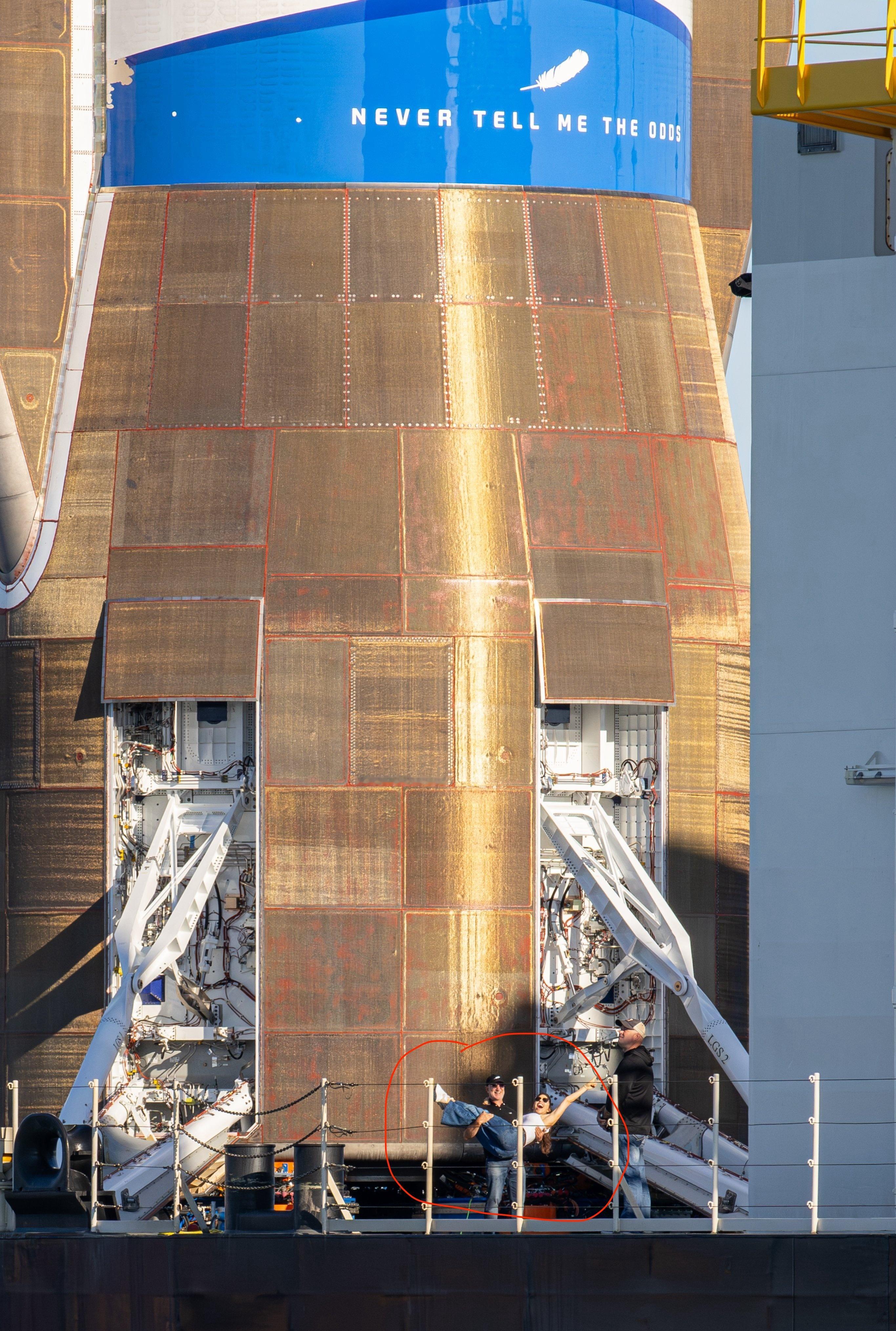 贝佐斯和他的爱人在新格伦火箭芯一级前合影! 新格伦火箭(New Glenn)是美