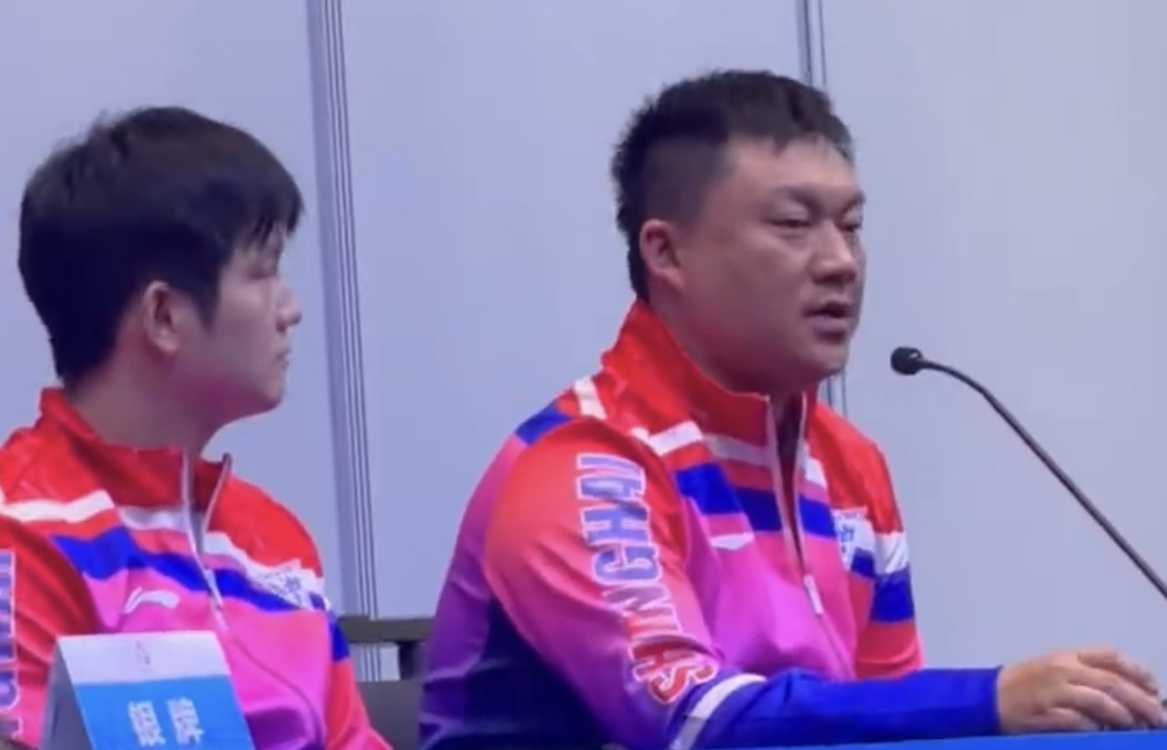 赛后发布会上,上海男乒主教练张洋首先向对手送上祝贺,随后总结了此次全运会的比赛。