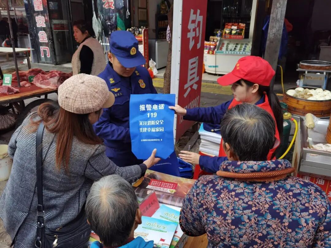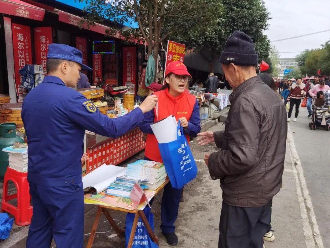 在罗旧镇集市,宣传员在醒目位置设立了消防知识咨询台,摆放了图文并茂的宣传展板,走进熙熙攘攘的人群,向过往的村民和沿街商铺发放《家庭防火手册》等宣传资料。用亲切的乡音,结合农村地区常见的火灾案例,讲解用火、用电、用气、油锅起火扑救、电气线路隐患排查以及火灾发生时的正确报警和逃生自救技巧。这种贴近生活的讲解方式,让过往群众听得进、记得住。