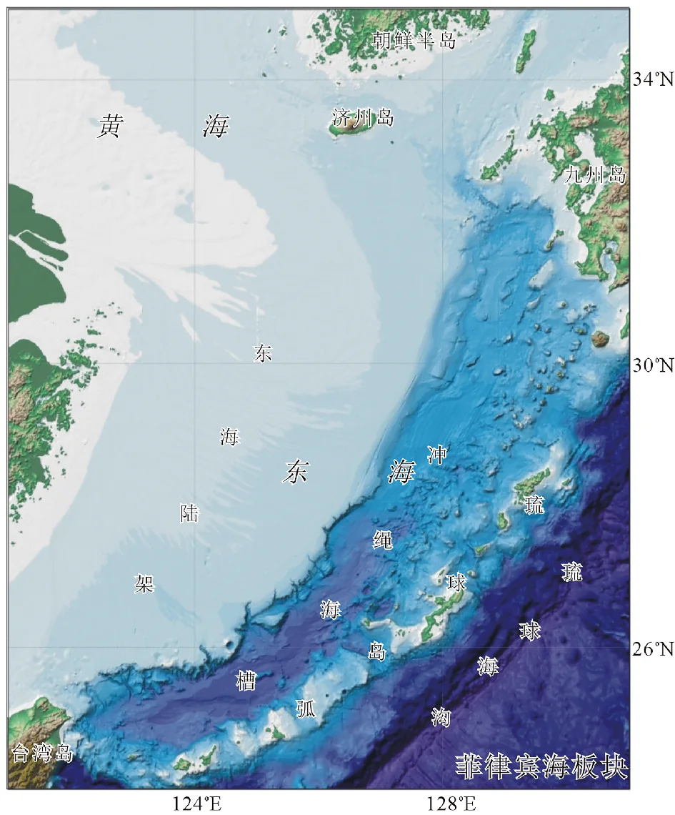 🇨🇳现今的东海是中国东部的大型边缘海, 自东北向西南长约1300km, 自西向东宽约740km, 面积约770000km2. 平均水深370m, 最大水深2322m. 东海北部以长江口北岸的启东嘴至韩国济州岛西南角的连线与黄海相连; 东北以济州岛东南端至日本福江岛及长崎半岛野母崎角的连线为界, 并经朝鲜海峡、对马海峡与日本海相通; 东及东南以日本九州岛、琉球群岛及我国台湾岛的连线与太平洋相接; 西濒上海市、浙江省、福建省; 西南由广东与福建海岸线交界处至台湾猫鼻头的连线与南海相通。在晚白垩世之前, 华南大陆以东并无东海, 而是古太平洋相伴. 晚白垩世之后原始的东海开始形成, 其后漫长的地质历史时期先后经历了晚白垩世至早始新世的被动陆缘阶段, 以及中始新世以来的太平洋板块和菲律宾海板块两期俯冲和弧后扩张, 奠定了现今东海西部为水深小的宽陆架, 东部为水深较大的冲绳海槽的构造格局. 现代的东海是在末次冰期(15ka BP)之后形成的, 海平面的变迁塑造了现代东海的海底地貌.
