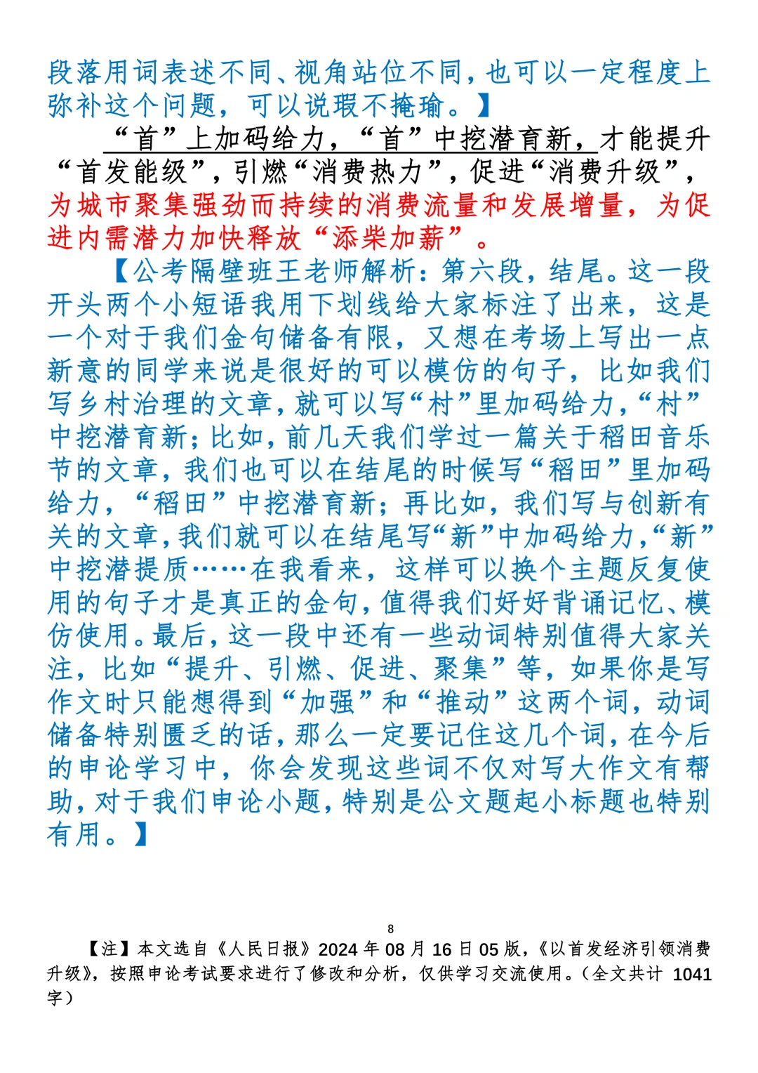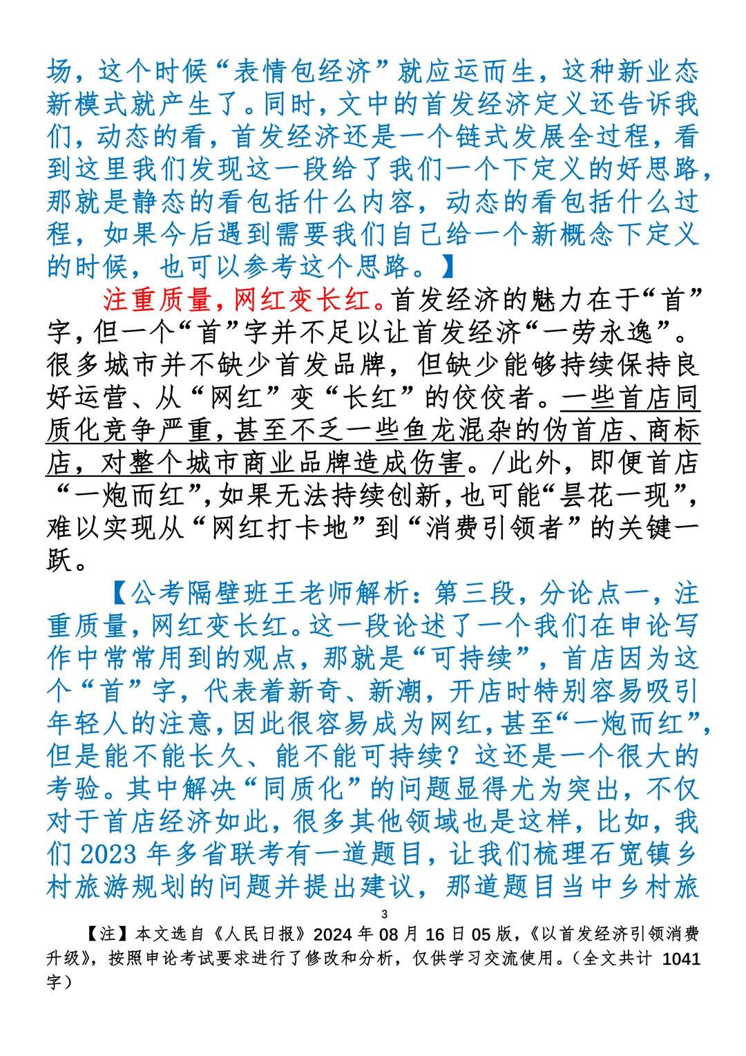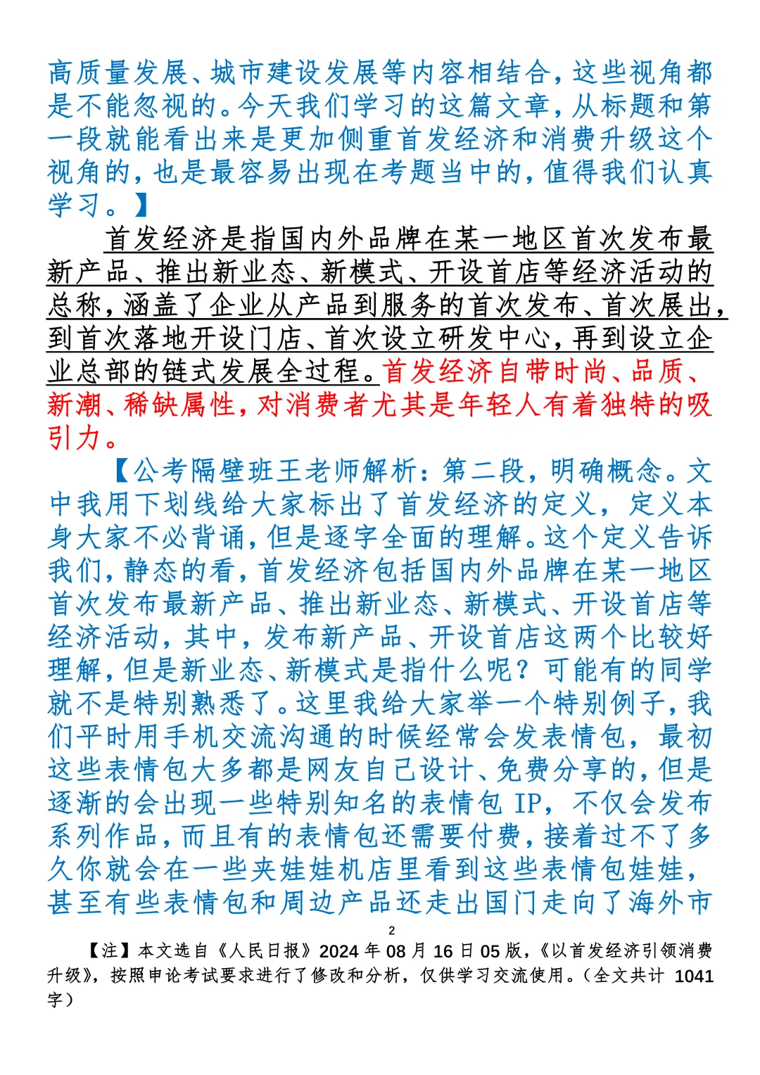 如何抄写:每日抄写文章发在“公考隔壁班王老师”账号,红色字是重点句和结构句,黑色字是正文,蓝色字是解析,大家抄写时不必抄蓝色字。建议先通读全文,做到心中有数再开始抄写,效果会更好。 关于文章:抄写文章来源于人民日报,但每篇文章我都根据申论考试要求进行了修改:一是重写或修改开头、结尾;二是统一段首句句式结构;三是调整段落字数,使文章结构更均衡;四是简化复杂长难句,使之更具可模仿性。每篇文章无论修改多少,都是基于申论考试要求,毫无对人民日报文章品评之意。(此处致敬人民日报)