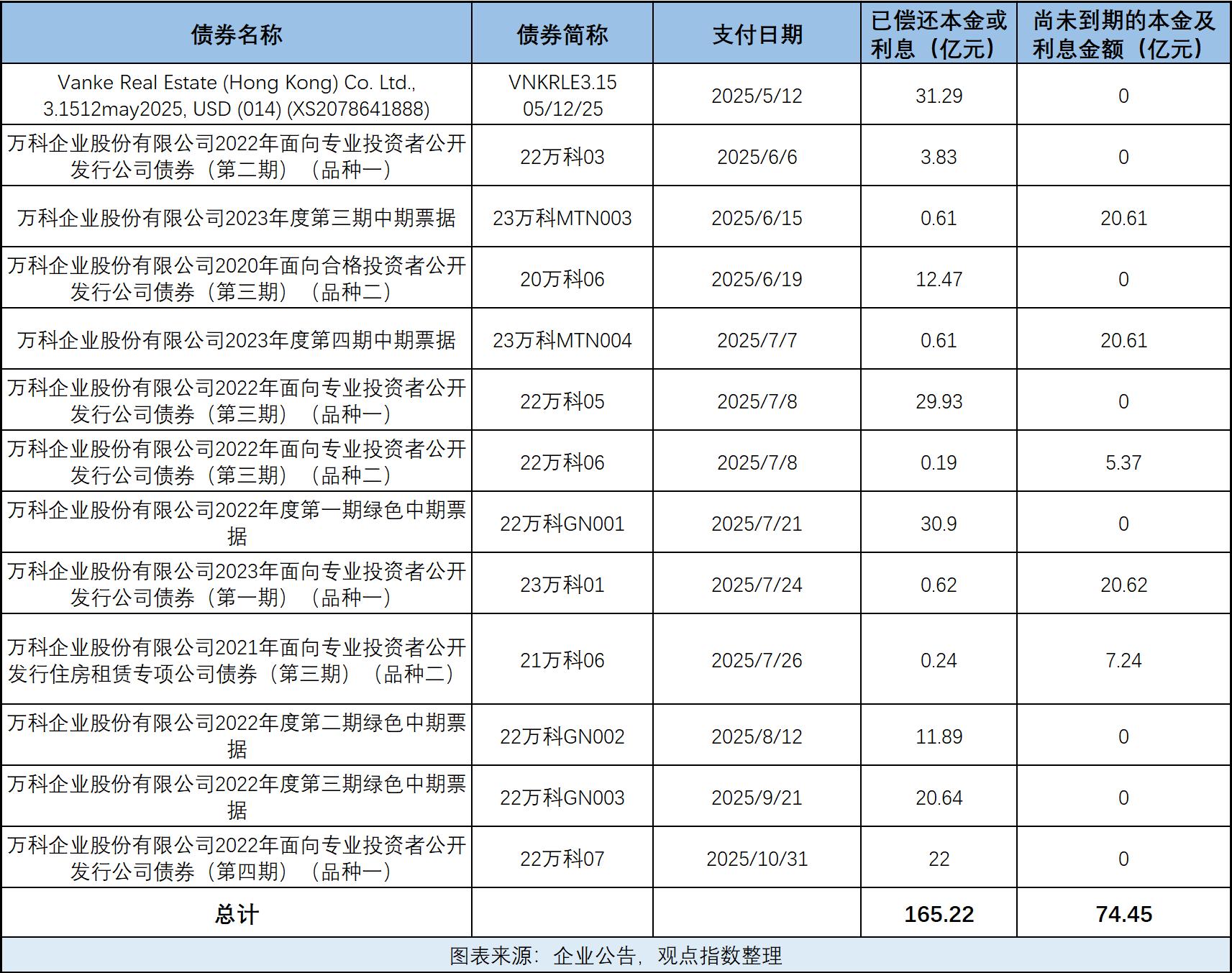 截至11月3日,万科已用深铁提供的借款偿还了12笔公开债券的本金或利息,金额合计165.22亿元。