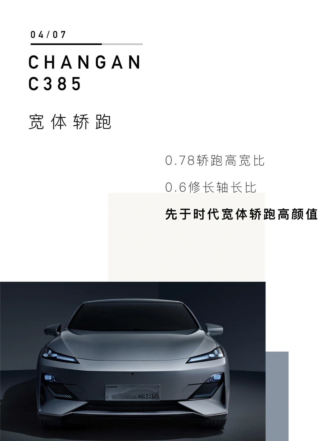 尺寸:4820/1890/1480mm,轴距为2900mm,车身长度是亮点 外观:在ET5、海豹、小鹏P7、Model 3都在做圆润轿跑的今天,说实话我已经审美疲劳了 C385大胆采用了几何式机甲设计风格,风格明显设计尺度恰到好处,眼前一亮的感觉 价格:未来将会配合新品牌共同上市,预计价格16-25,长安一贯的高性价比、较高的设计水平 国产品牌纷纷推出MODEL 3竞品车型的今天,能否打破特斯拉的强劲势头,抢回市场份额,让我们拭目以待!