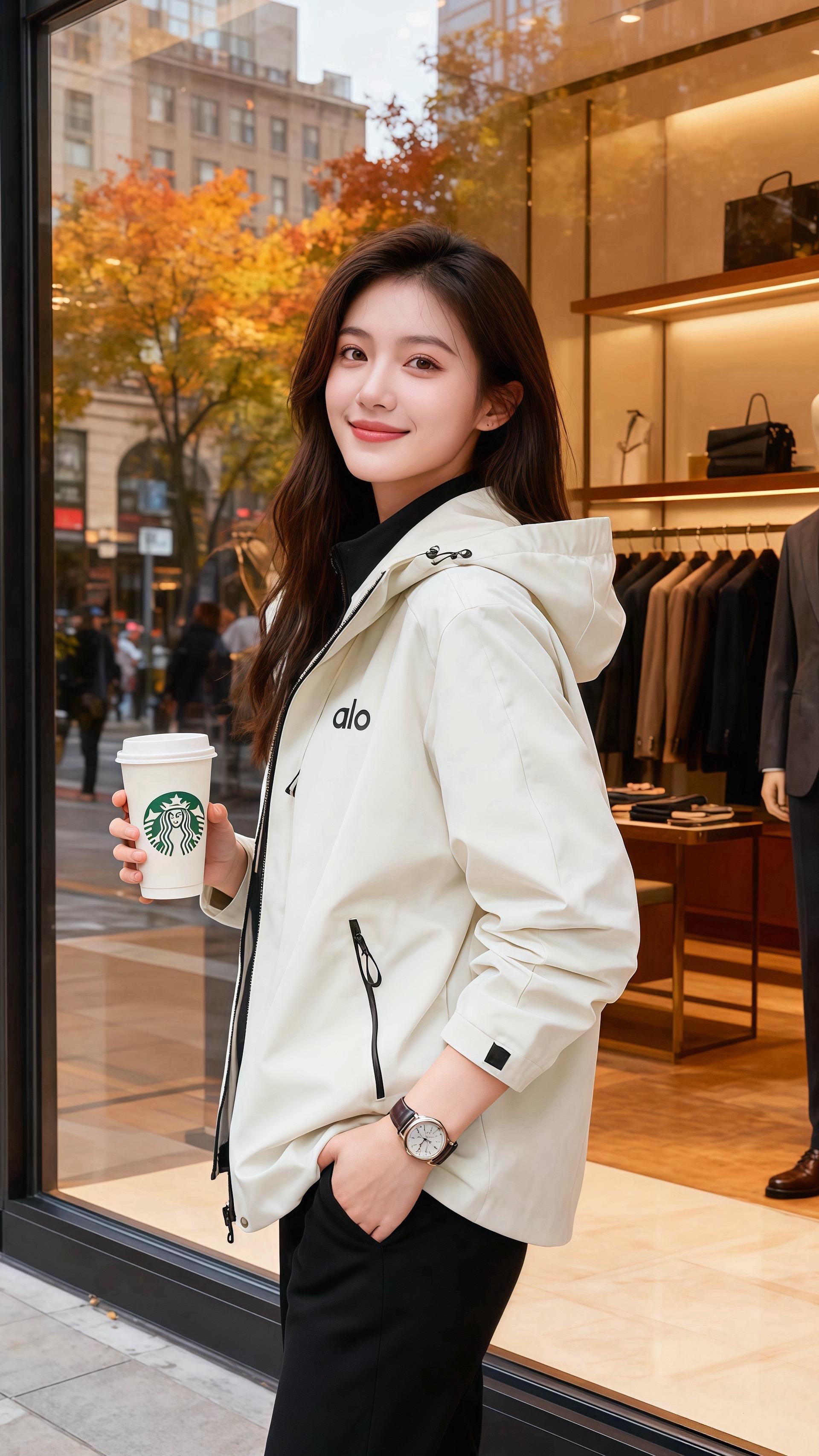 这组穿搭堪称运动风天花板!灰色短外套利落显高,蓝色瑜伽裤塑形百搭,白运动鞋轻松提