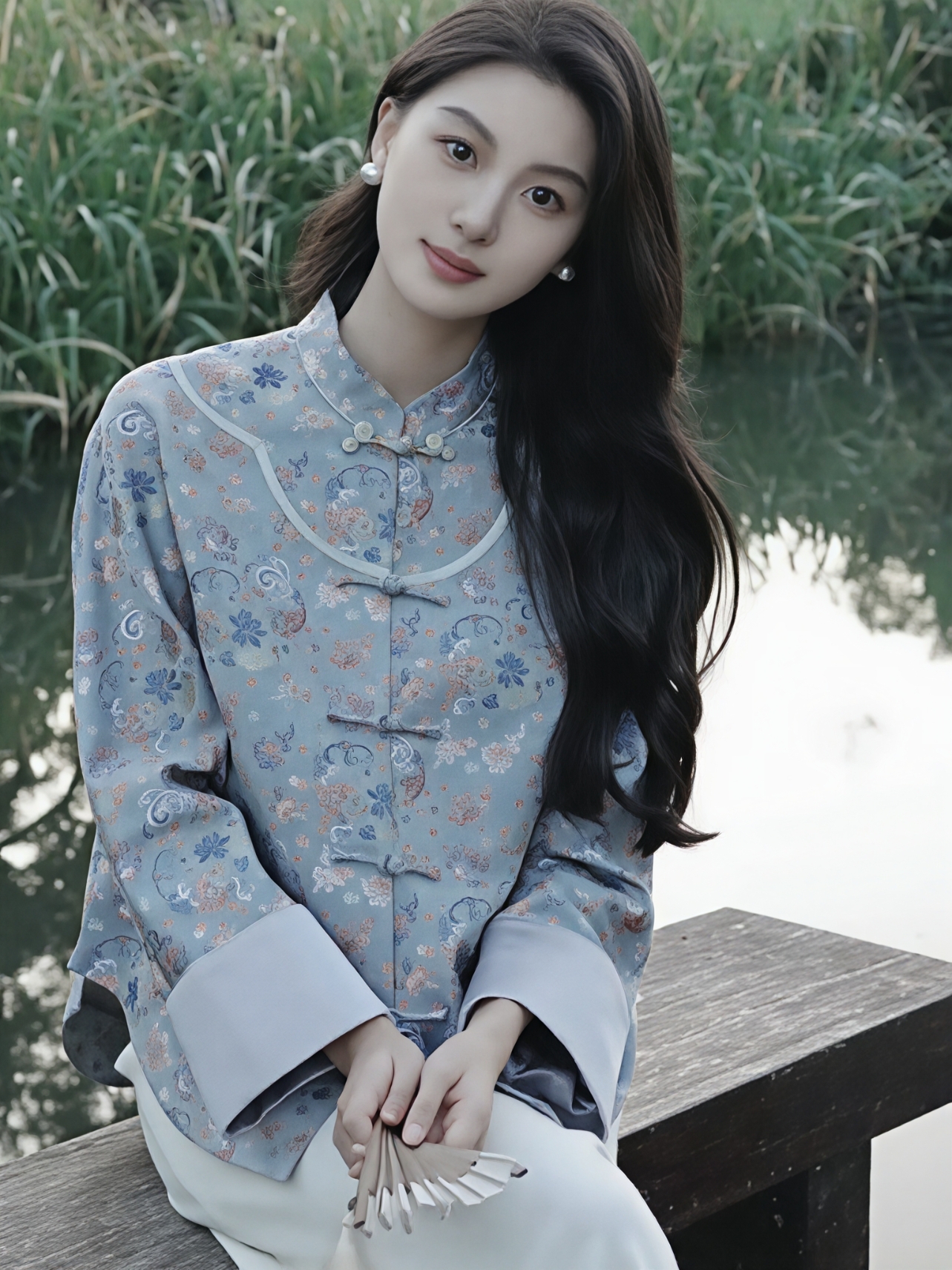这才是国风美天花板!小姐姐穿宋锦衣一整个温婉住 谁懂啊!穿浅蓝宋锦新中式上衣的小姐姐,往湖边一坐就像从江南水墨画里走出来的! 眉眼清润又舒展,盘扣衬得脖颈纤长,连耳坠的珍珠都跟着温柔起来——这哪是穿衣服,是把“温婉大气”四个字穿在了身上! 国风美从来不是刻意扮古,是骨子里的舒展从容!你被这种气质戳中了吗? 国风美人 氛围感美女温婉大方的美女 高清美女