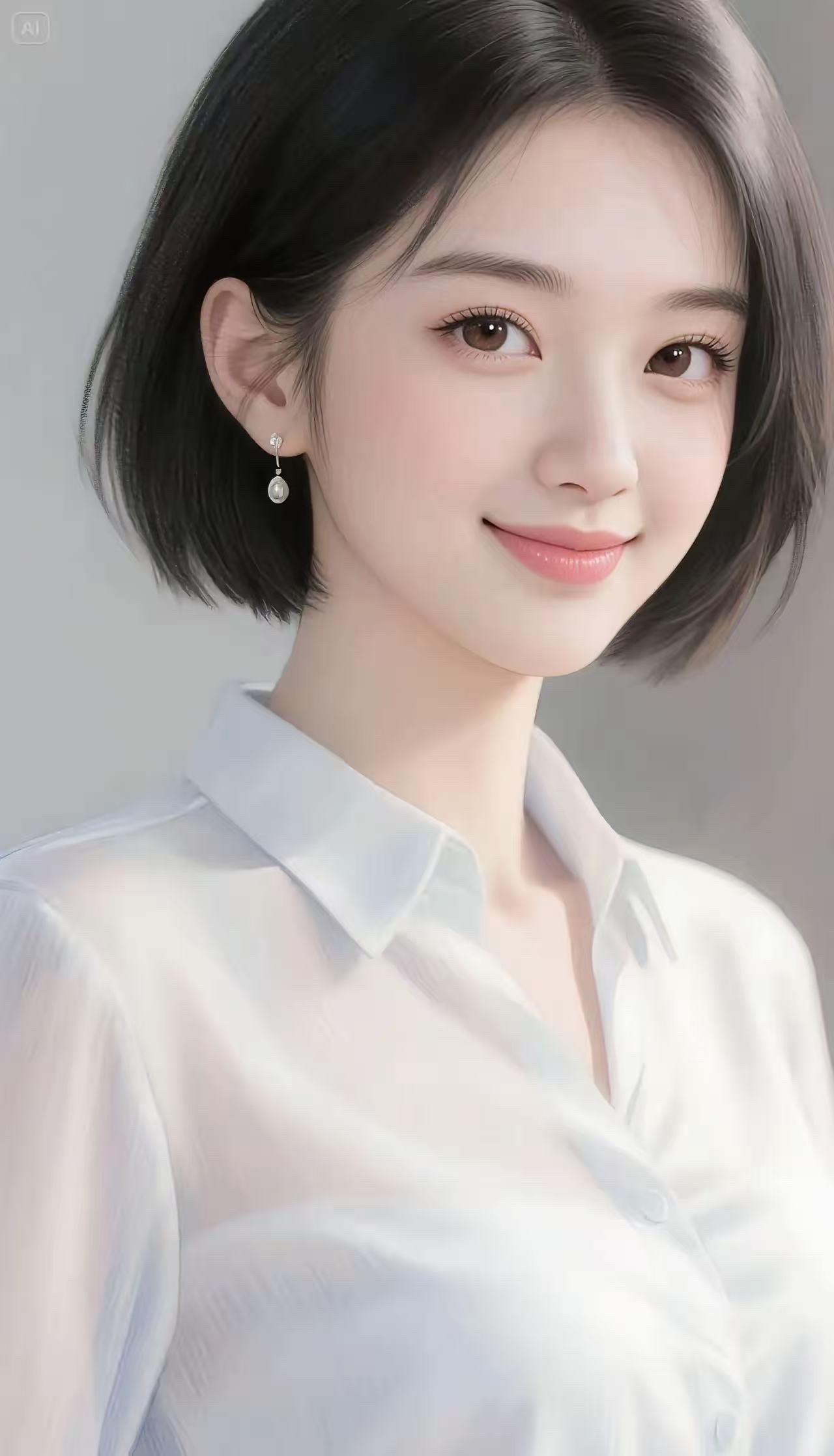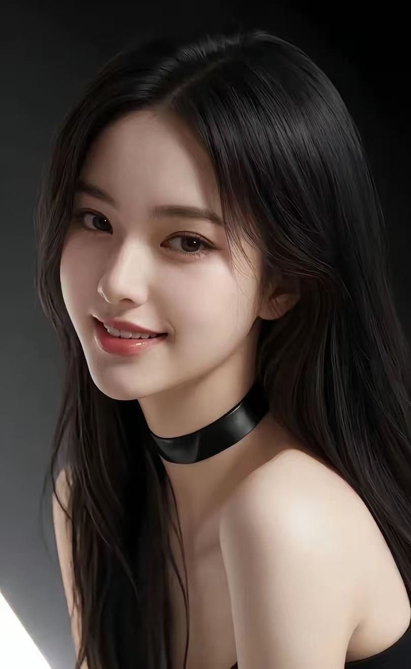 甜美少女,黑发红唇,温柔微笑,魅力无限!