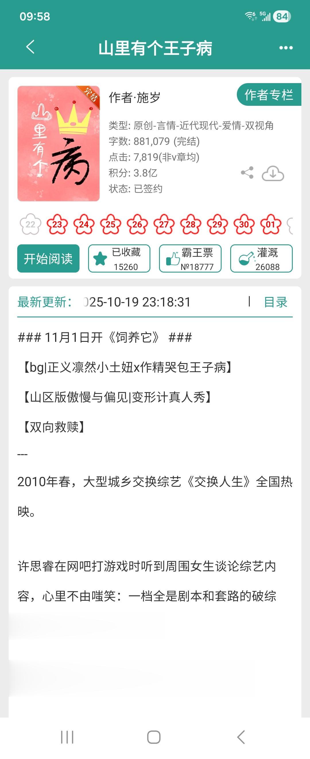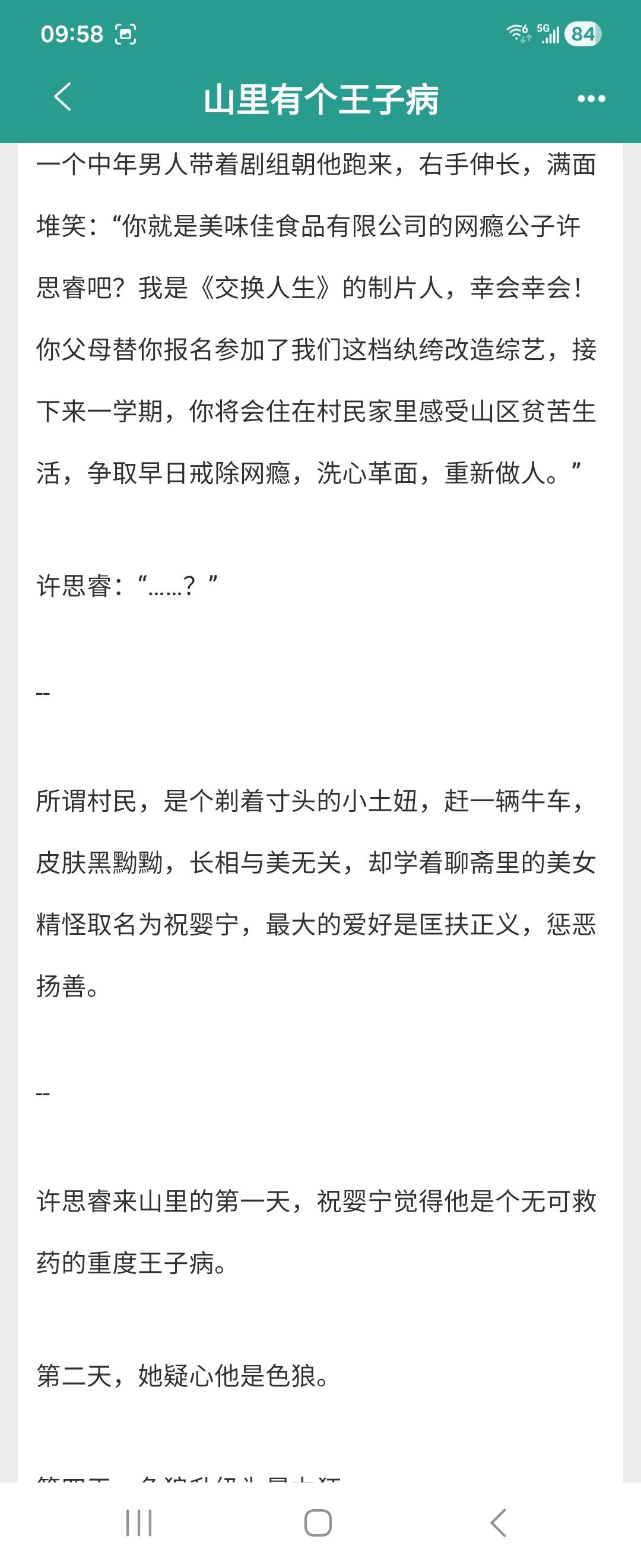 山里有个王子病。超级好看的一本小说。成长文,故事从初中开始讲,男女主家...