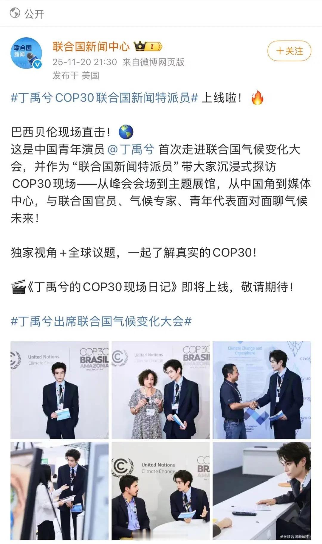 联合国新闻特派员丁禹兮来啦,被好多官媒认领诶。