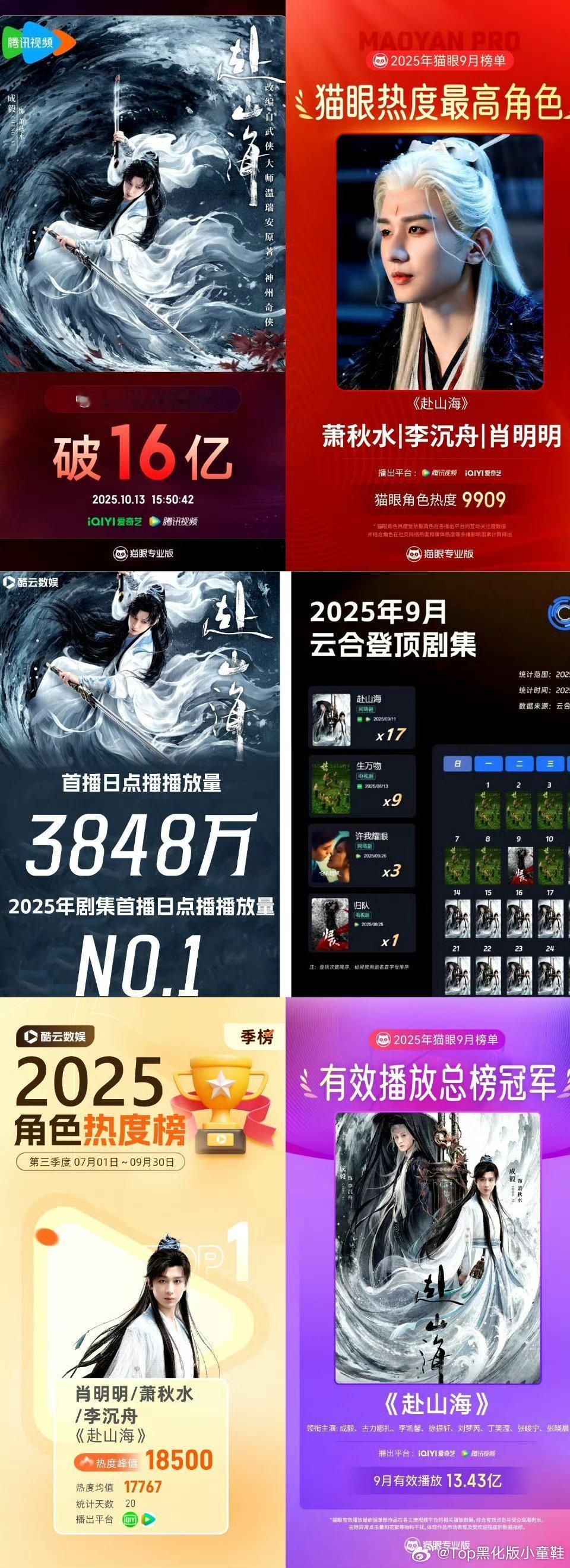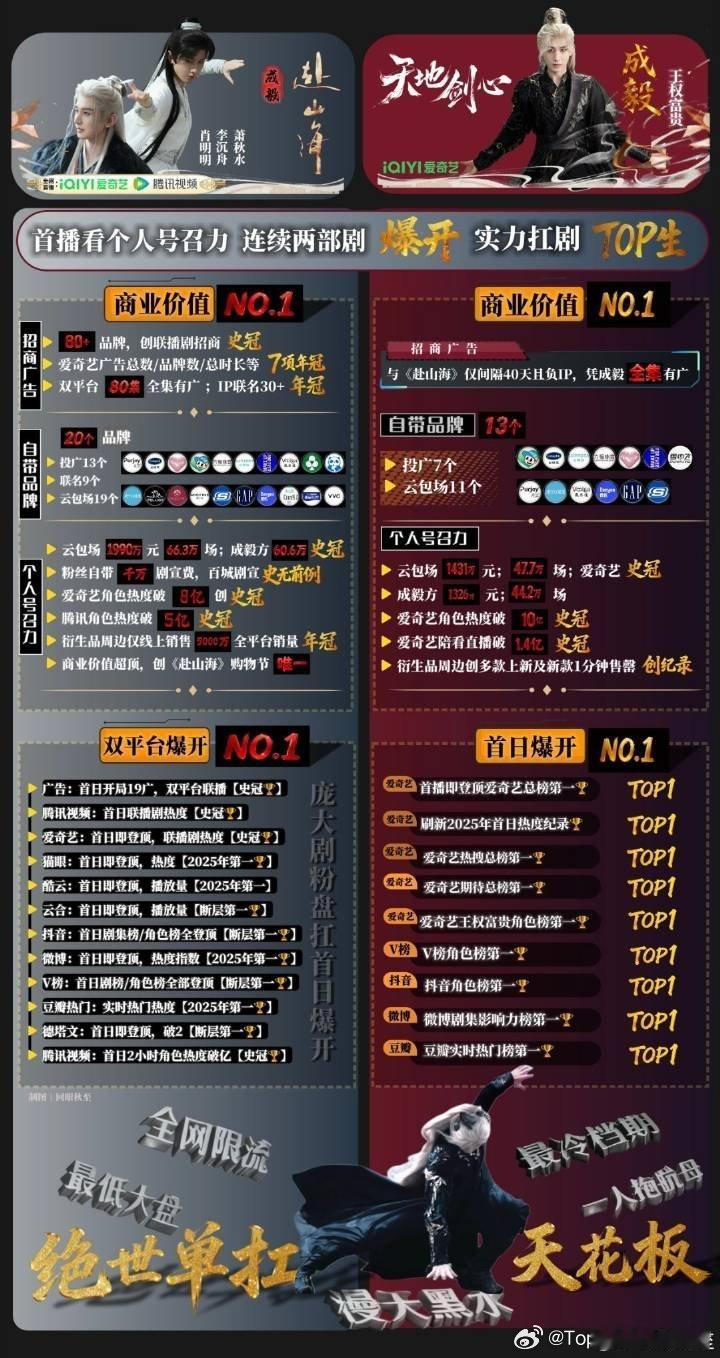 成毅《赴山海》长尾效应越来越明显了,李沉舟热度值也破亿了🔥,《赴山海》在9月冷档期漫天黑水里播出,依旧爆开拿下播放量+热度断层第一!🔥
