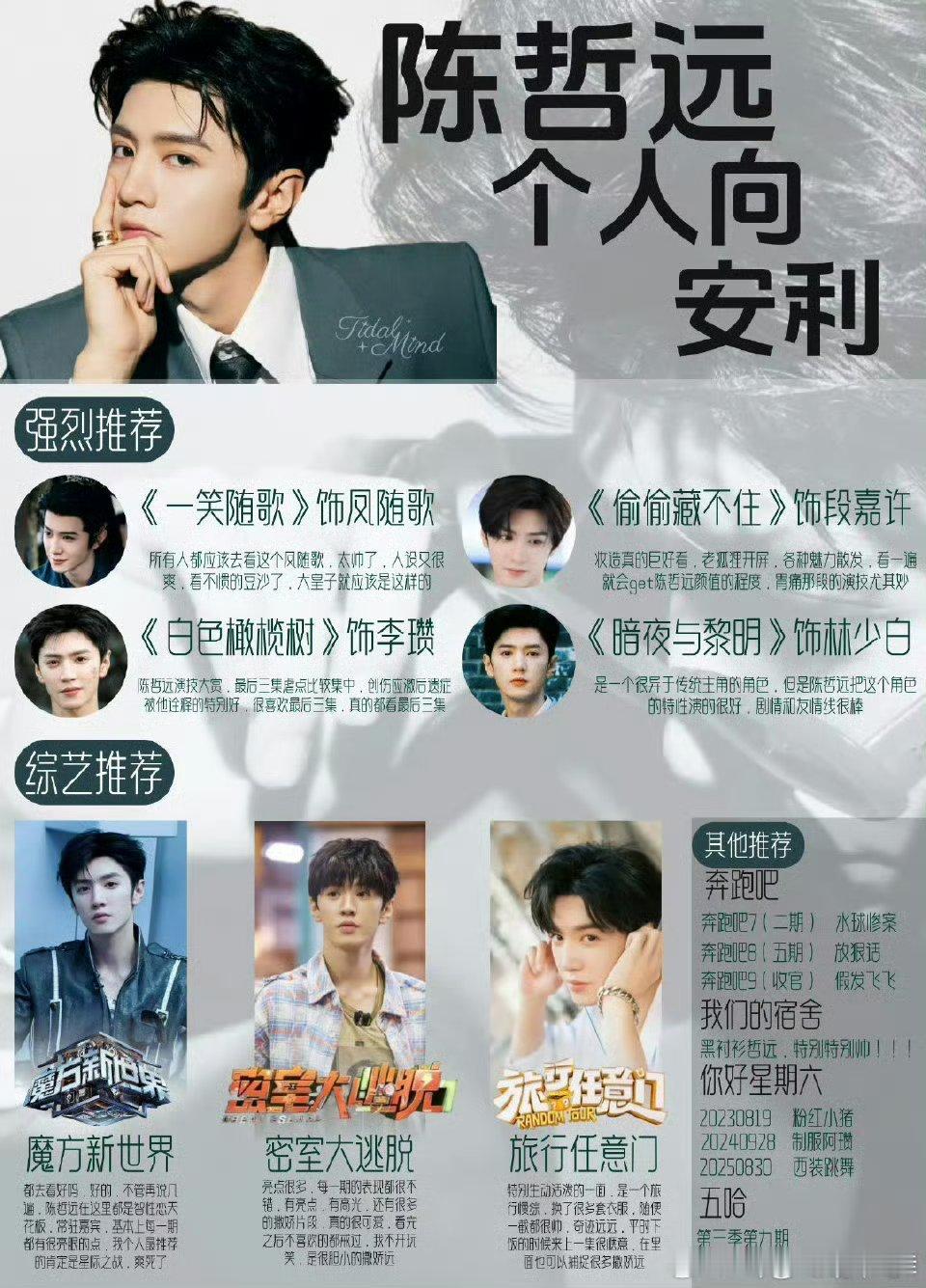 陈哲远有流量有实绩事业心又强,,每个月几乎都是无缝进组+商业活动,新剧《不让江山》男频+单独过会,做远丝就是爽!