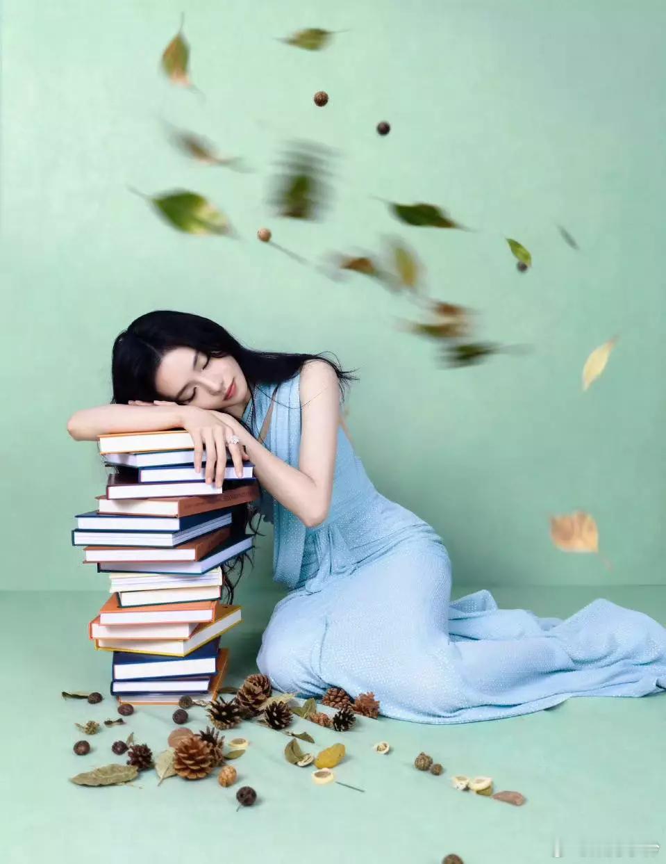 明星丨写真刘浩存的一组蓝色穿搭图片~