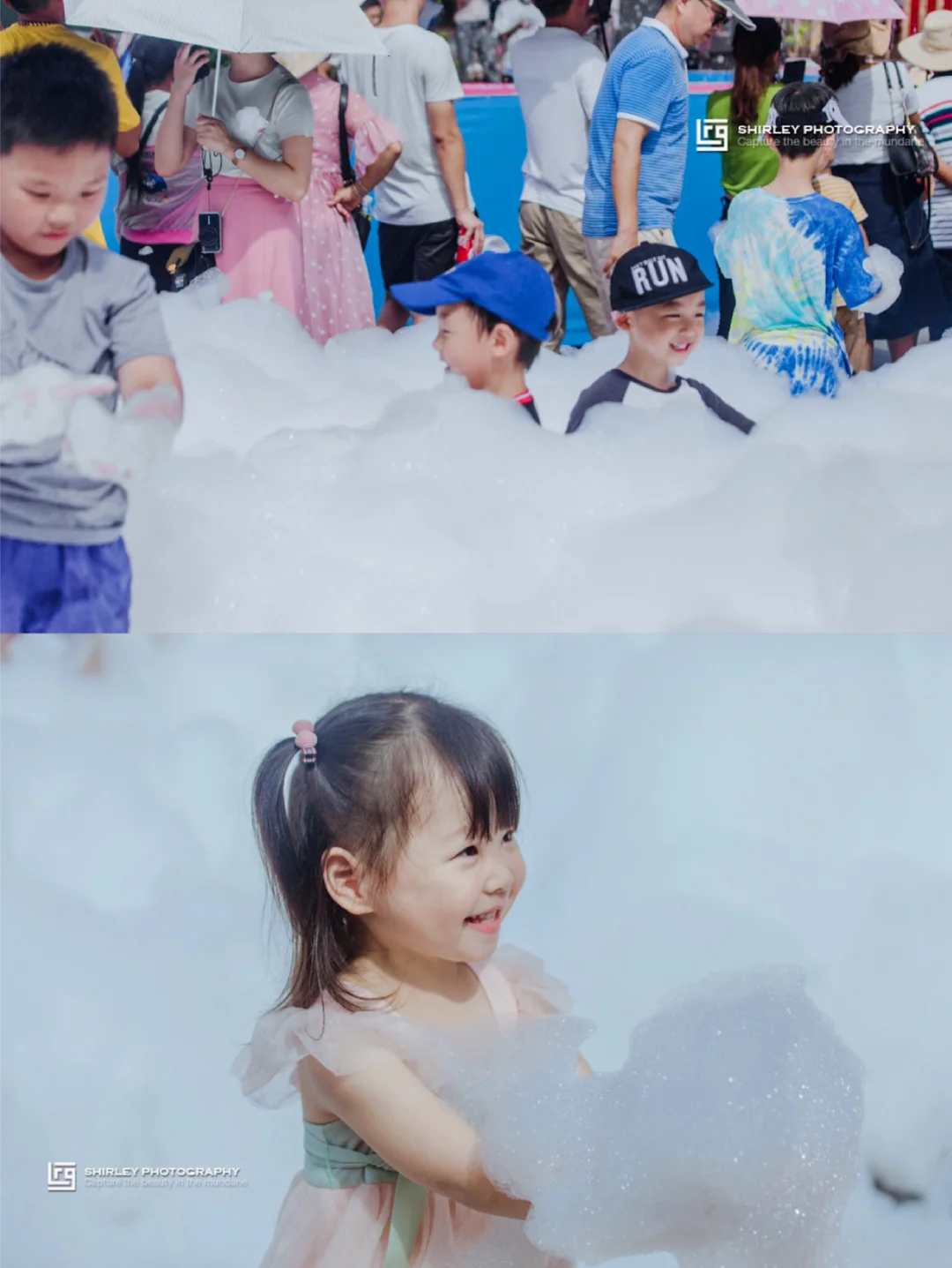 泡沫节是三亚千古情今年夏天推出的特别活动,上万立方米彩色泡沫齐发,全民花式避暑。现场最开心的自然是小朋友们!无论家长在背后怎么呼喊,他们都义无反顾地往泡沫堆里冲去。