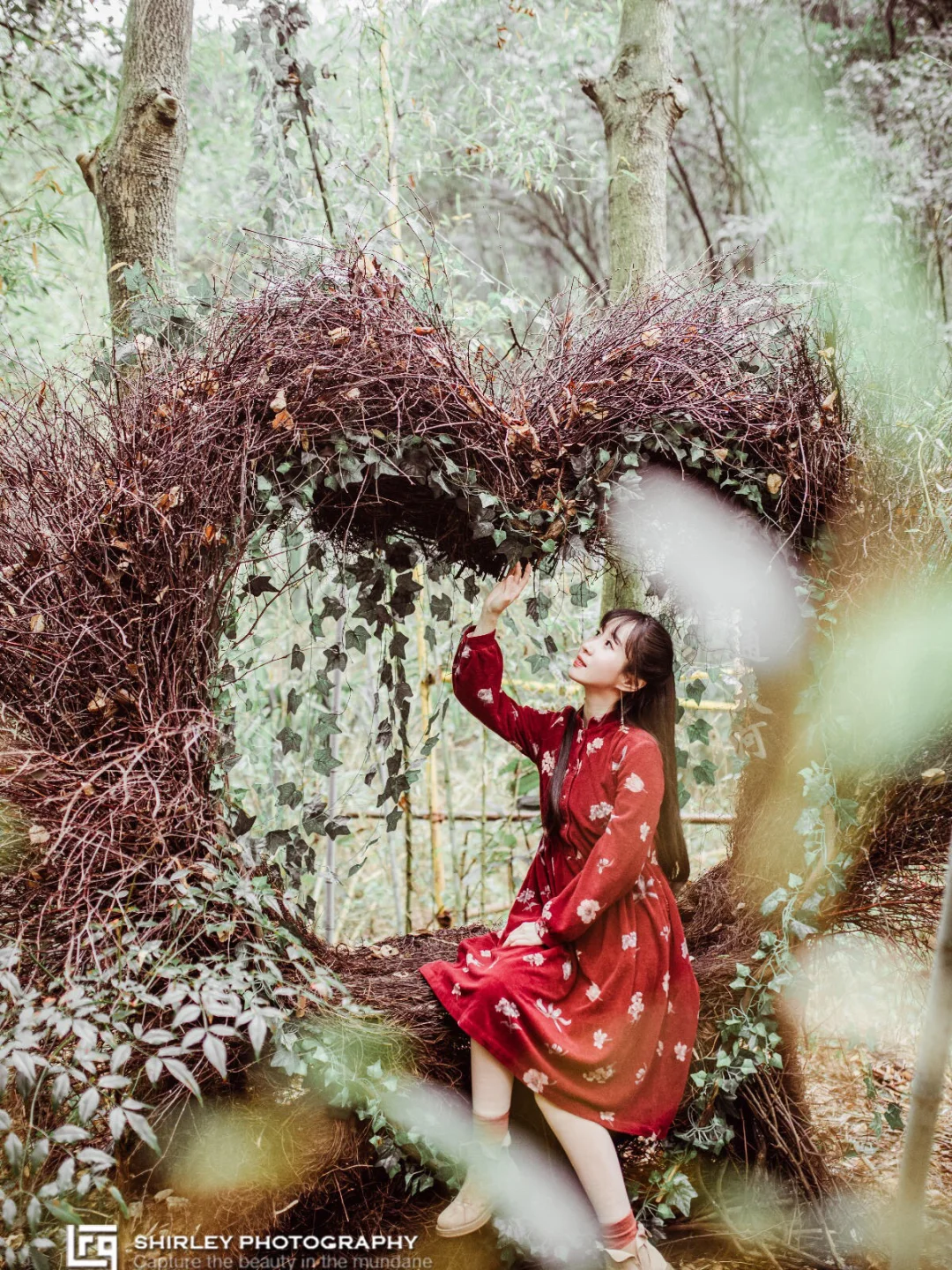 湖边的栈道还有一个十分推荐拍照的地方,叫做爱之谷,听名字就很浪漫。它是一条位于山林间的木栈道,栈道两旁放置了在巴厘岛大热的“鸟巢”,坐在上面拍一些人像,很有森系的感觉呢!