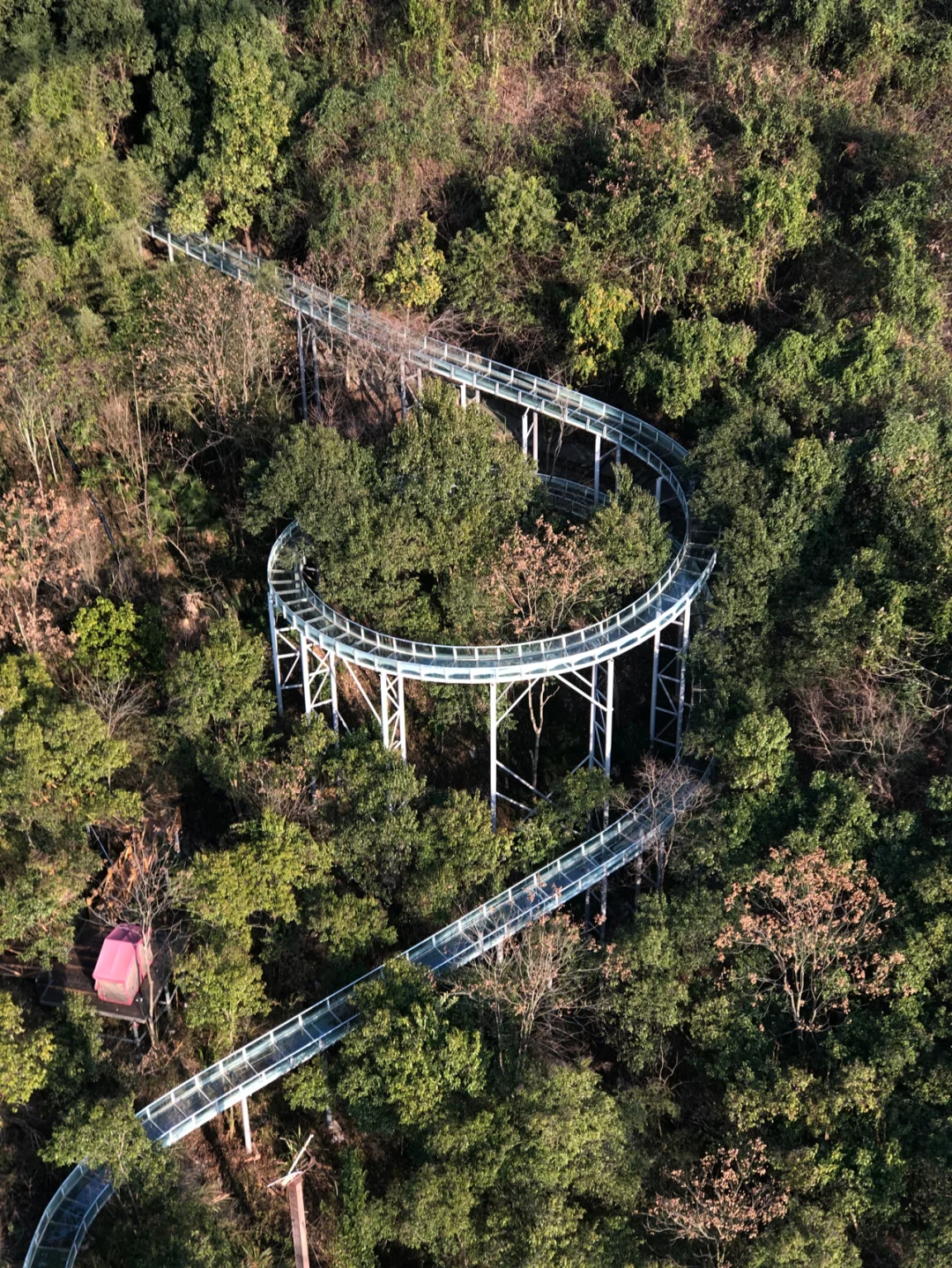 就是玻璃漂流啦!我们去的时候没有开放,从桥上俯拍了一张,由于滑道实在太长,拍不到全貌。夏天来这里,一定是个清凉玩水的好去处。
