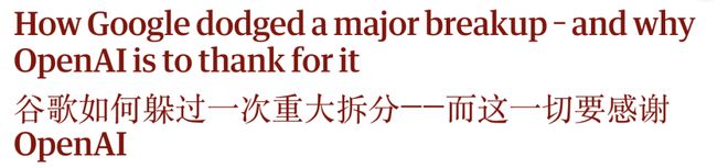 有意思的是,OpenAI的崛起,不仅唤醒了谷歌在AI领域的加速发展,甚至还间接帮助谷歌避免了被分拆,出售其搜索业务的命运。
