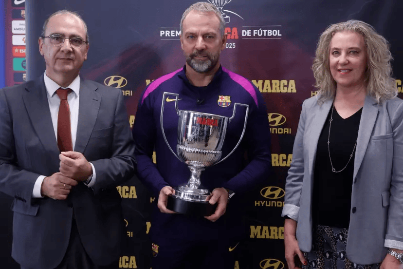 虎扑11月21日讯汉斯-弗利克领取了米格尔-穆尼奥斯奖杯,作为上赛季西甲最佳教练,此奖项由所有《马卡报》记者投票选出。这个奖项实至名归,不仅因为他带领巴塞罗那赢得的冠军,也因为球队在整个赛季中展现出的优秀比赛内容。