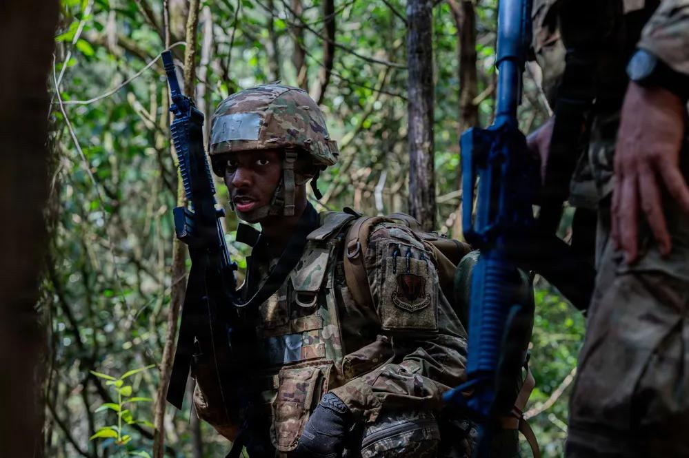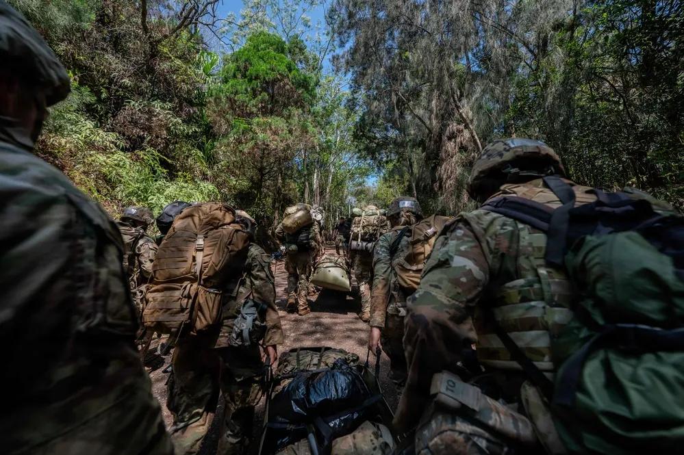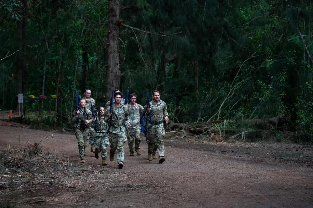 中美之间士兵训练几乎没有什么差别。 2025年10月2日,美国空军派驻于珍珠港-希卡姆联合基地的空军人员在夏威夷的斯科菲尔德兵营参加障碍训练课程。这次训练要求参与者在动态环境中提升体能耐力、团队协作和解决问题的能力。