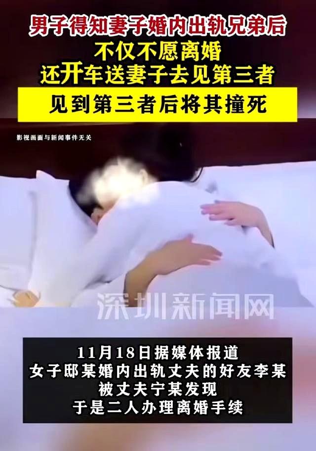 辽宁大连,妻子突然闹离婚,男子得知妻子和好兄弟搞在了一起。 男子开车送妻子和第三者见面,猛踩油门撞了过去。 好兄弟丧命,男子被判死缓。 冲动是魔鬼,退一步海阔天空,成全他们,背叛你的人滚远远去。 可惜,红颜祸害两壮男,善哉善哉。 这个判决确实有点重,这样判决有鼓励出轨,插足他人家庭的意思,15年以下应该比较合理。 是人他都不允许自己的配偶公开出轨,这个法院应该作为重点考虑。 虽然不值得,但是有点判重了。 双重背叛的痛彻心扉,也是咎由自取,安分守己就不会出现这种事情。 杀父之仇夺妻之恨,都属于冲动杀人,判死缓重了,应该15年或者10年以下。 娶妻娶贤,婚前就不正经的女人千万别要。