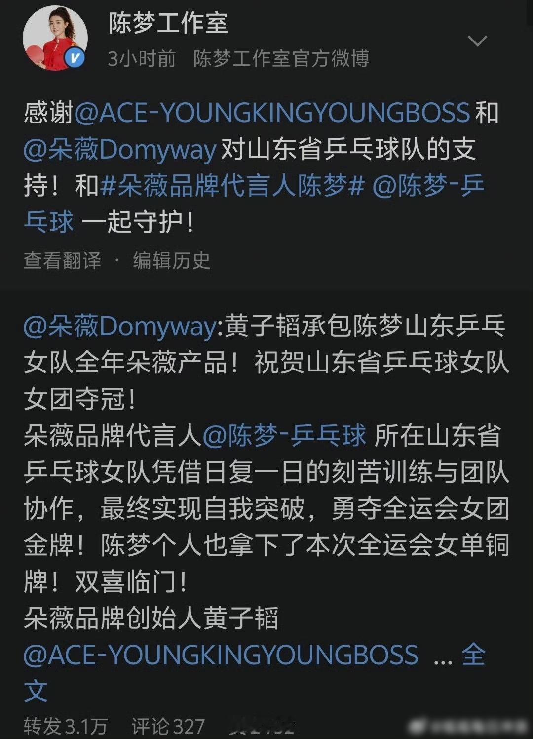 黄子韬这波操作,我真的懵了… 黄子韬承包陈梦队伍全年卫生巾这事,我第一反应是:啥?没看错吧? 不是我说,现在明星搞联动,不是送花就是发祝福,顶多捐点训练器材,谁能想到往“卫生巾”上靠啊!关键他俩还是青岛老乡,陈梦刚带队拿了全运会女团金牌,这是时隔12年夺冠,超牛!韬韬直接来这么一出,也太实在了吧! 咱普通人都懂,女生出门在外,尤其是运动员常年训练比赛,这种贴身用品真的太刚需了,但平时没人好意思拿出来说。黄子韬倒好,不玩虚的,用自家朵薇品牌直接包全年,既给冠军姑娘们解决了麻烦,又悄悄打破了那种“谈这个就尴尬”的羞耻感,这格局真不是一般大。 而且最戳我的是,他不是单纯“送东西”,是真的考虑到女运动员的实际需求,不是嘴上喊着“支持女性”,而是落到实处。现在好多明星搞营销,全是表面功夫,像他这样又活跃又没塌房,还实实在在做实事的,真的少见吧? 咱就是说,青岛人是不是都这样啊?又坚韧又暖心,陈梦在赛场上拼尽全力,黄子韬在背后用这种贴心的方式支持,这波老乡联动真的越品越香! 突然就觉得,明星企业家的意义大概就是这样吧,不是光赚大钱,还能借着自己的力量,做些别人想不到但又很需要的事。我甚至都想冲一波朵薇试试了,毕竟是韬韬敢拿来给冠军用的,应该差不了? 你们刷到这事的时候,是不是也跟我一样,又懵又觉得好戳人啊😂冬日生活打卡季黄子韬 黄子韬夫妻 黄子韬夫妇 黄子韬恋情公开 黄子韬综艺金句 黄子韬求婚谣言 黄子韬综艺趣事 黄子韬