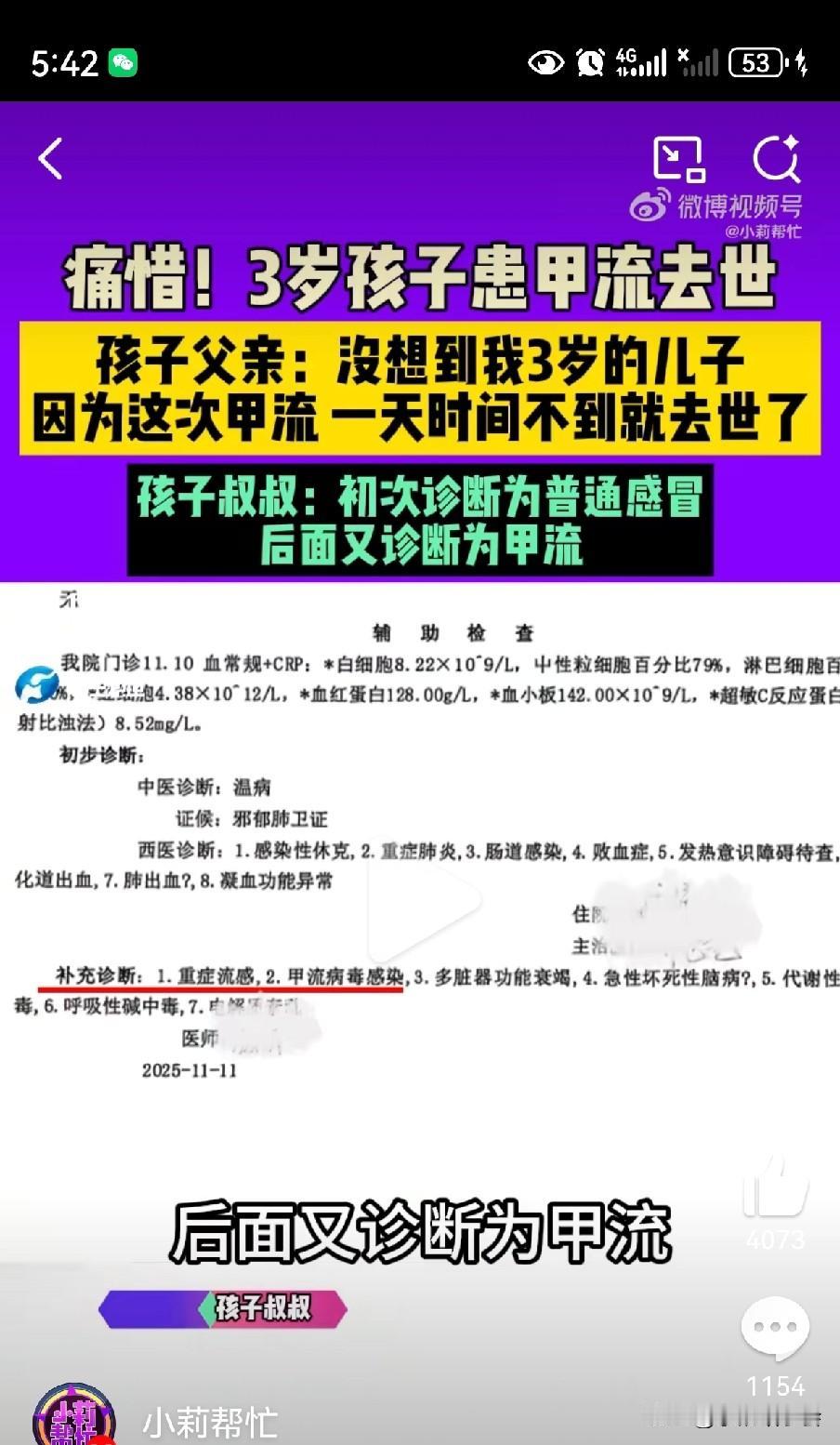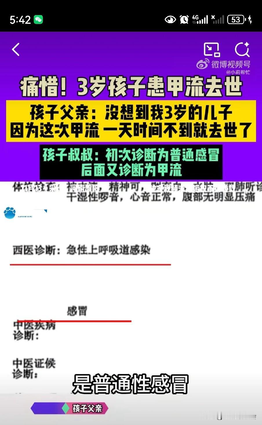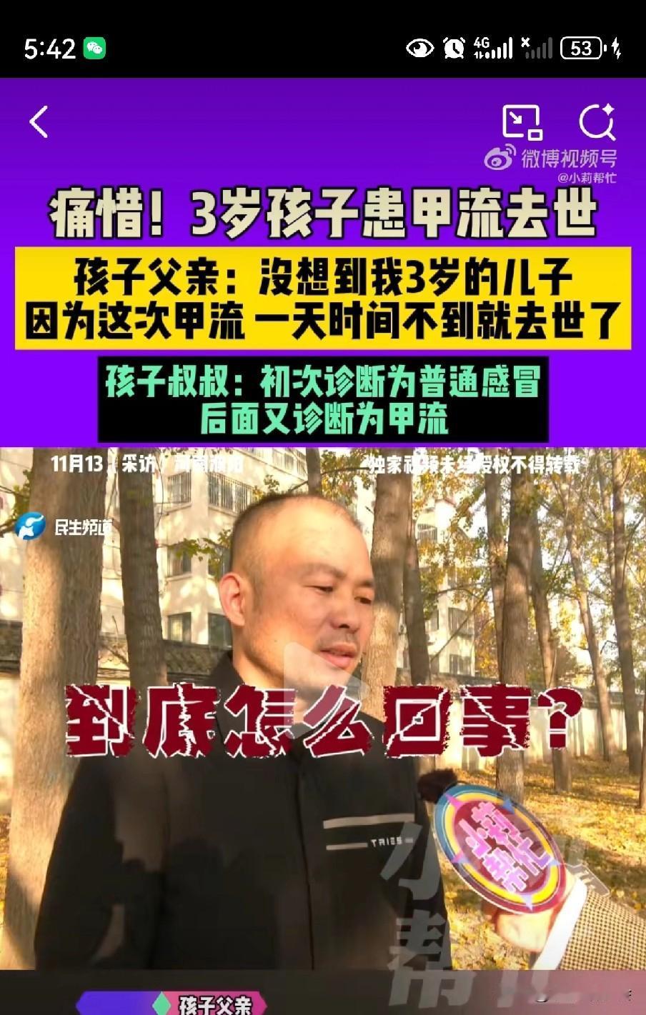 真让人心痛!濮阳3岁儿童患甲流,不到一天时间就因抢救无效死亡了。 11月10日